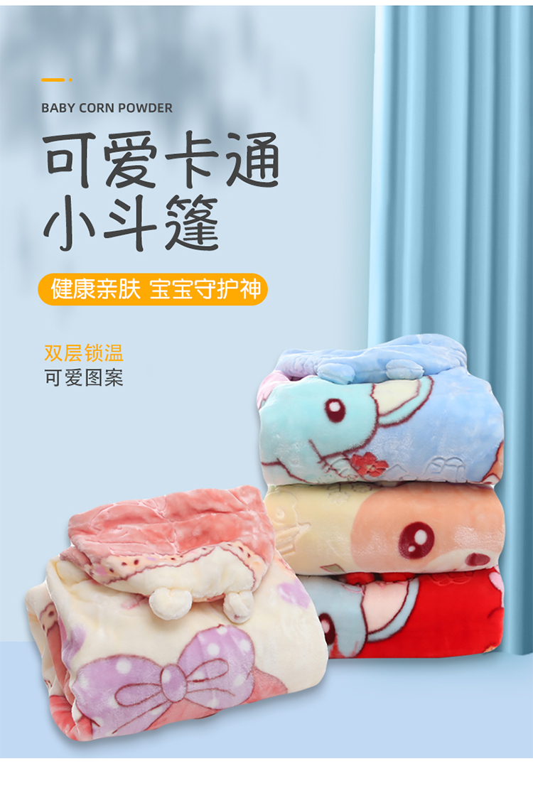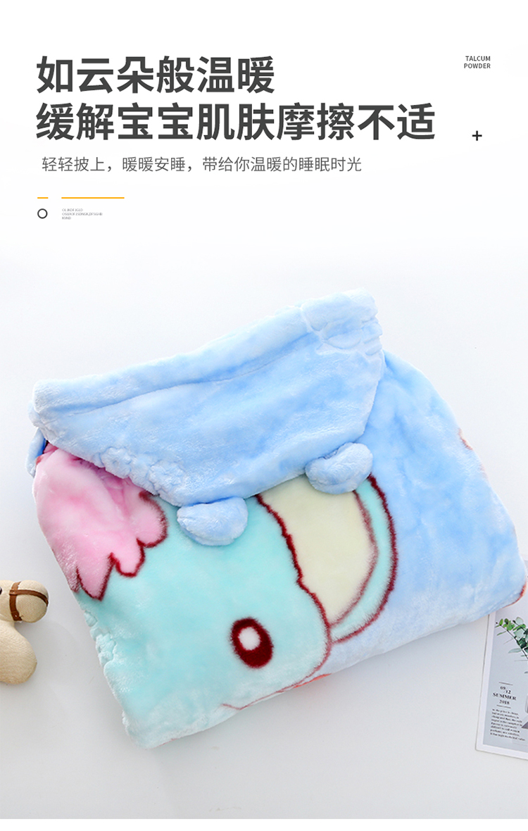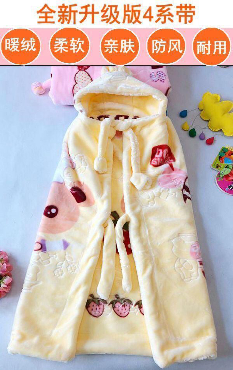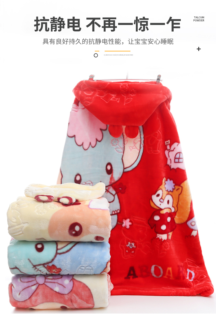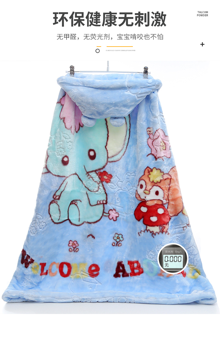 动感光波双层加厚儿童婴幼儿毛毯防风戴帽斗篷盖毯披风抱被毛毯毯子