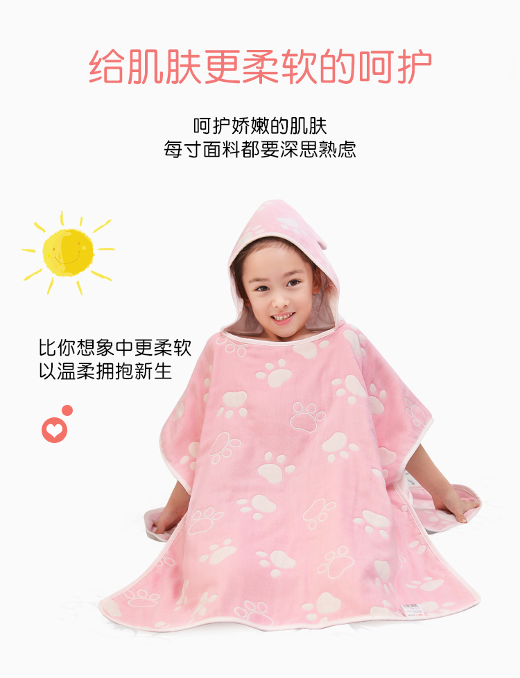 动感光波婴儿童浴巾6层纱布睡袋抱被斗篷戴帽