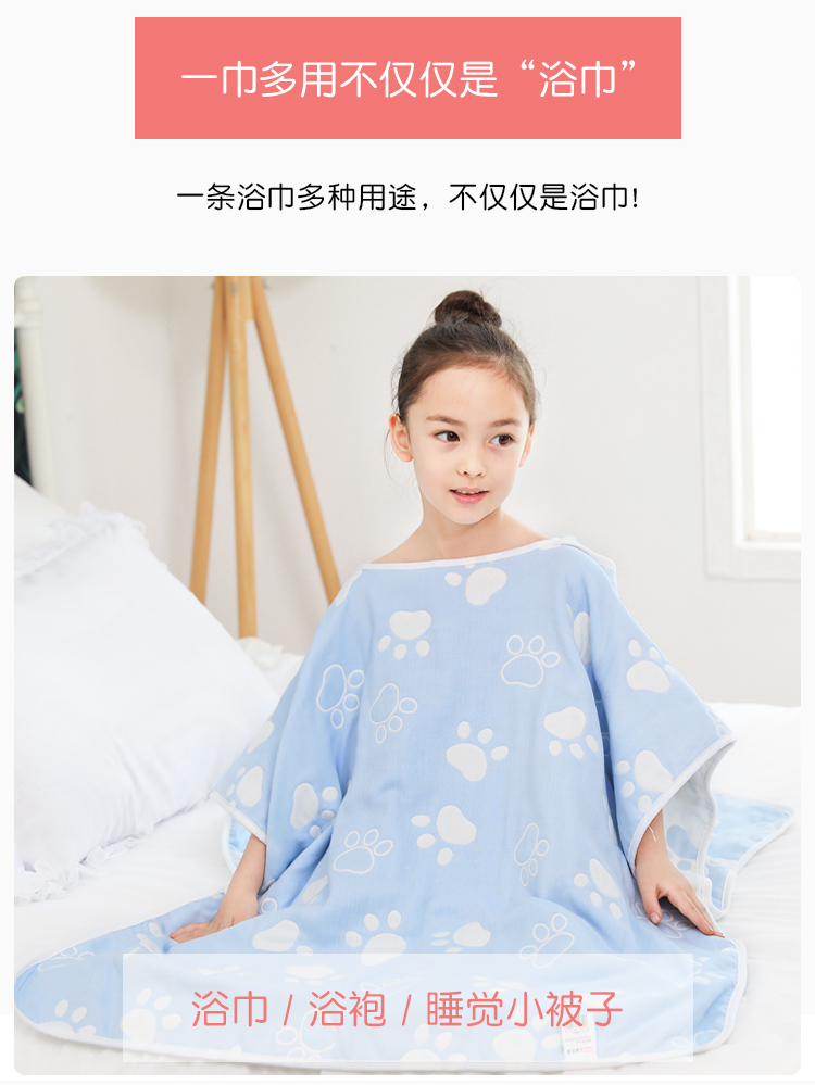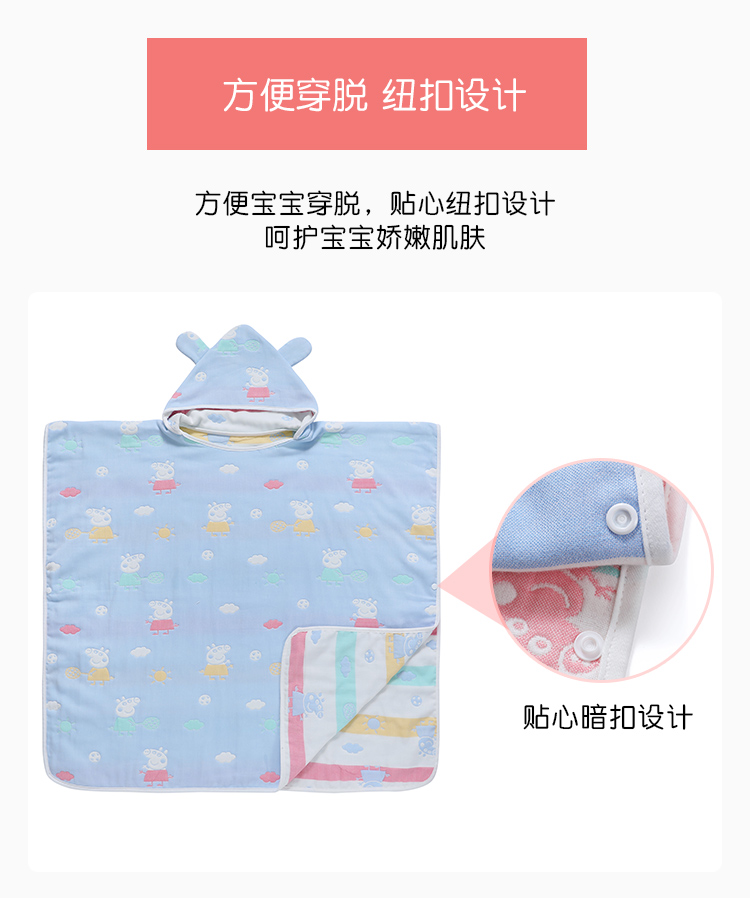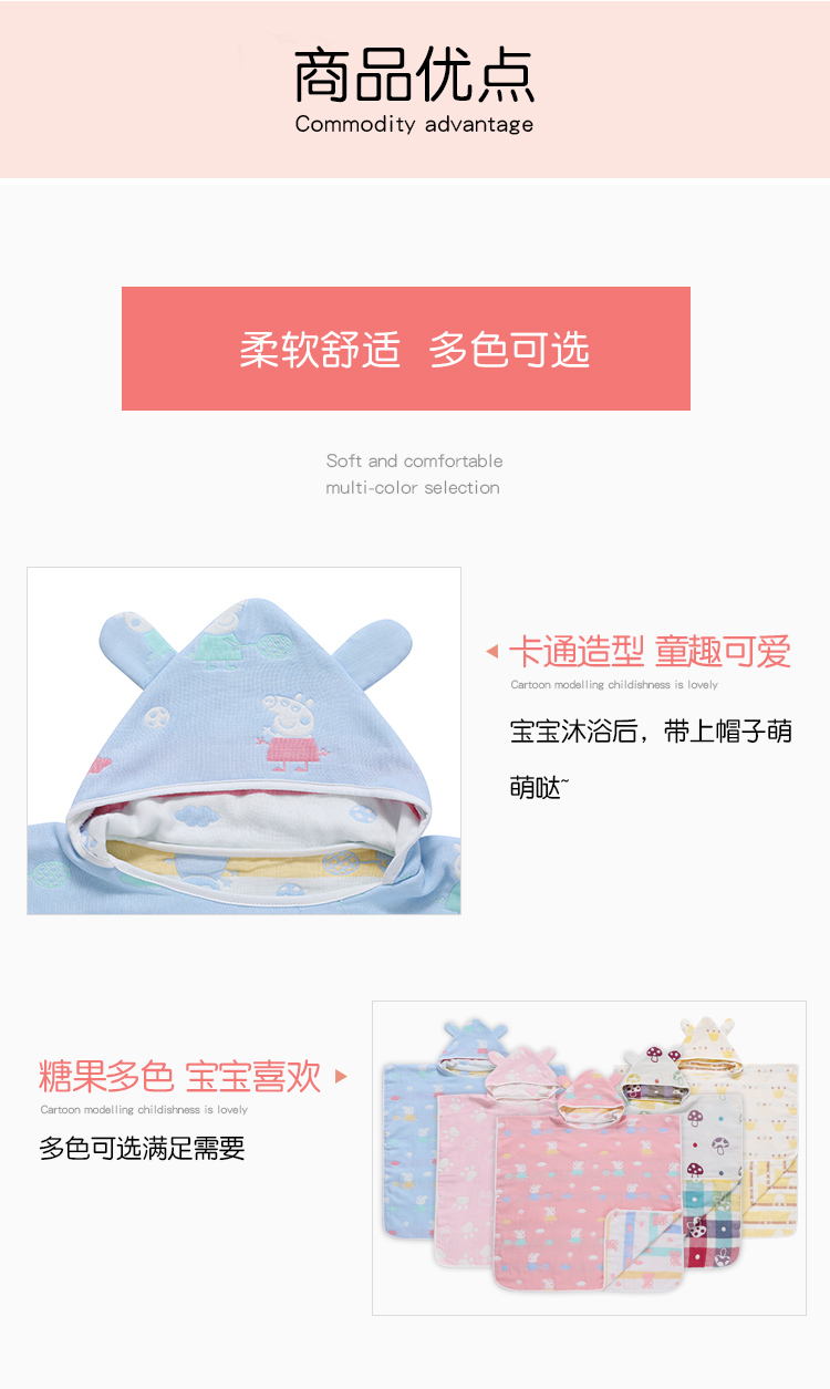 商品名称:动感光波婴儿童浴巾6层纱布睡袋抱被斗篷戴帽