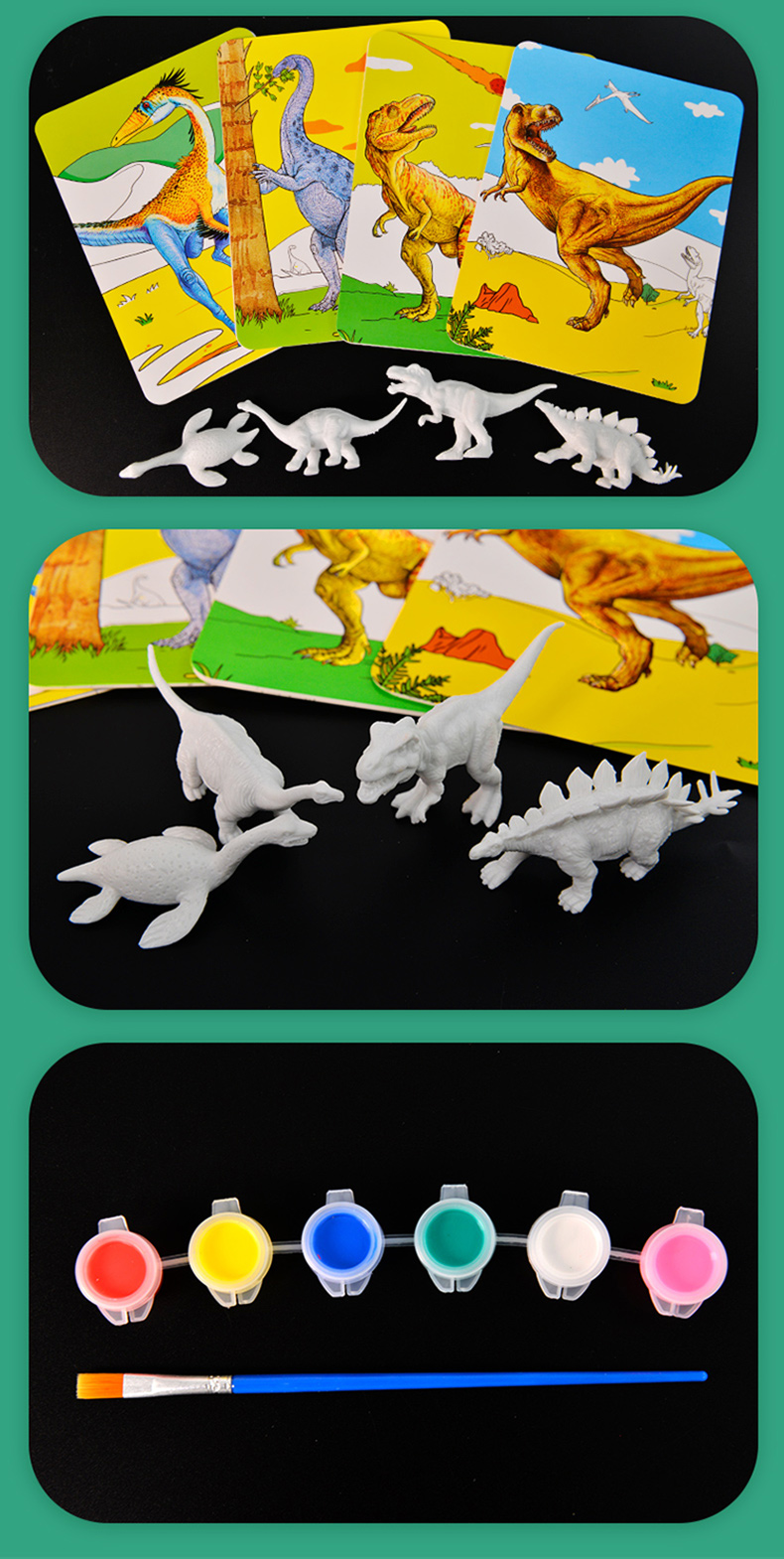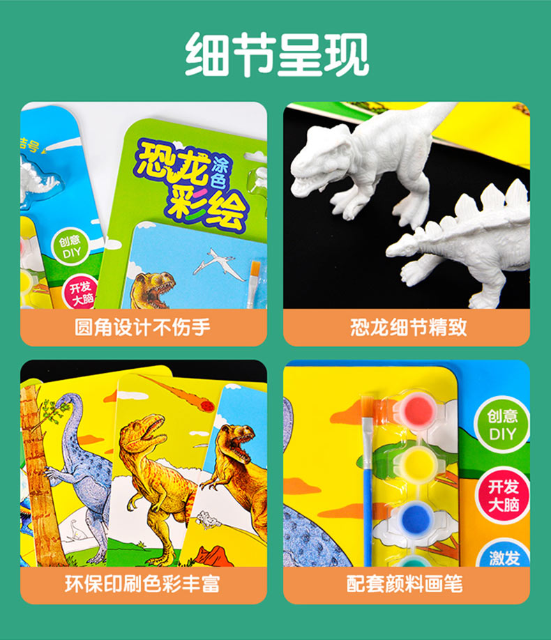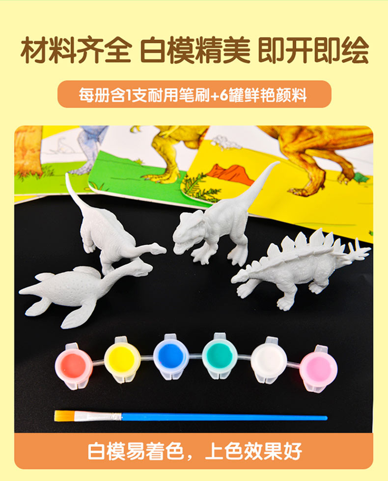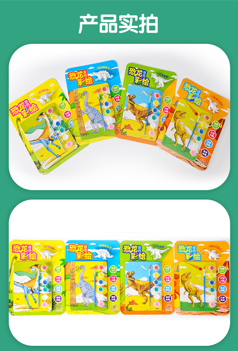 全四册恐龙涂色彩绘DIY涂色恐龙儿童玩具白胚公仔涂鸦手工套装幼儿园填色益智涂鸦礼物