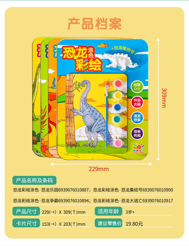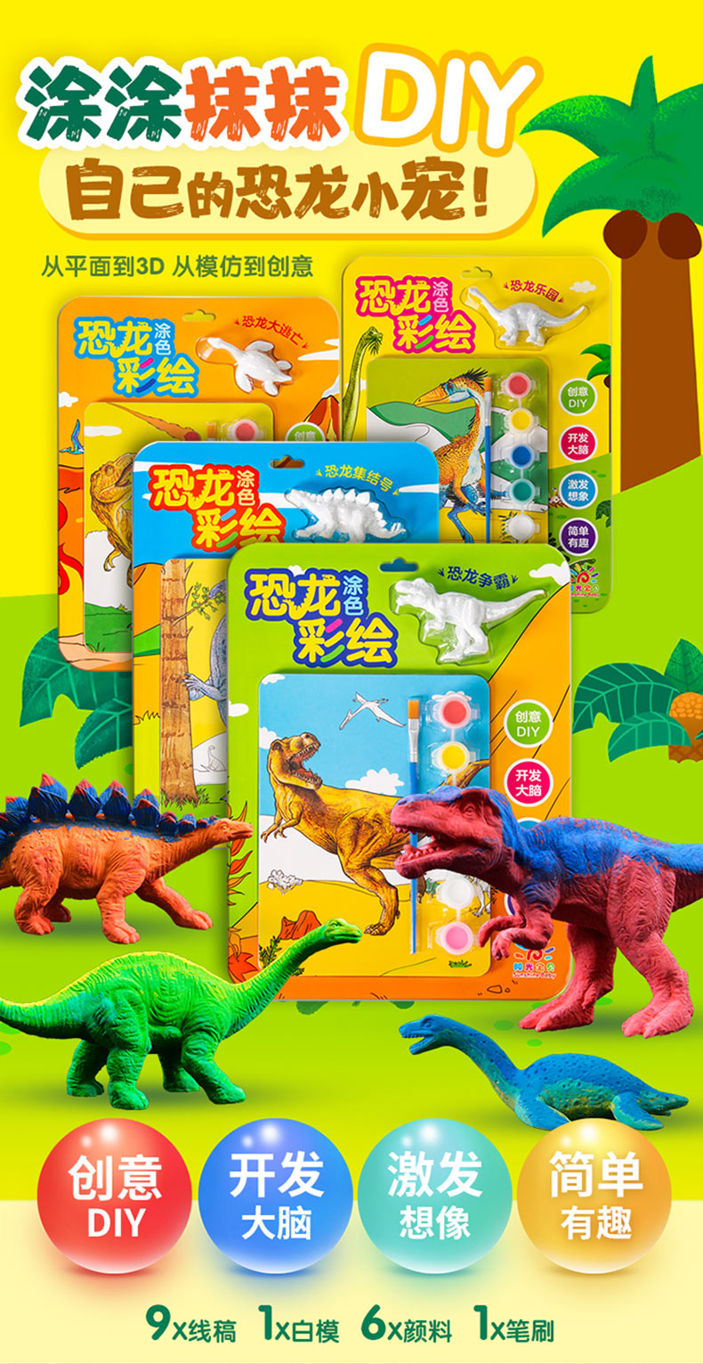商品名称:全四册恐龙涂色彩绘DIY涂色恐龙儿童玩具白胚公仔涂鸦手工套装幼儿园填色益智涂鸦礼物