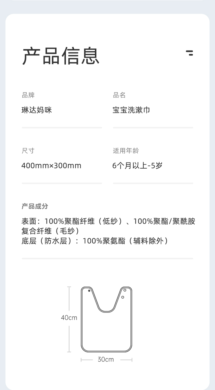 商品名称:琳达妈咪儿童洗漱巾宝宝洗脸围兜不湿衣婴儿毛巾防水围嘴刷牙擦脸漱口巾