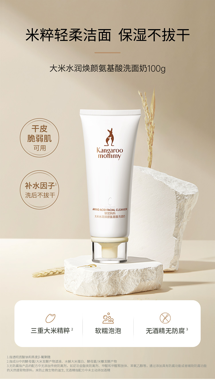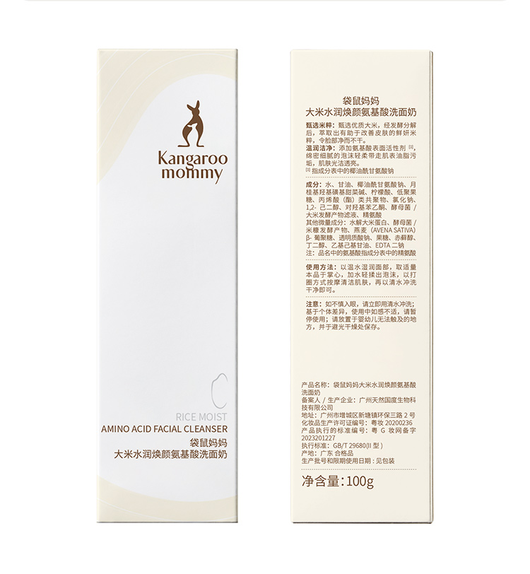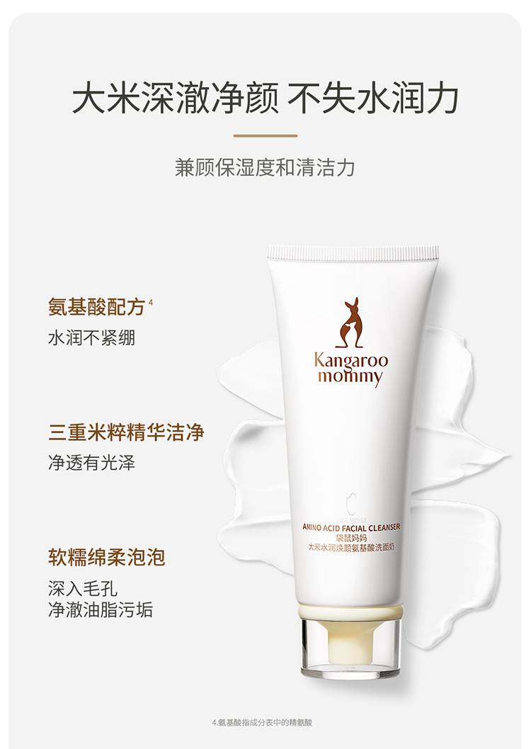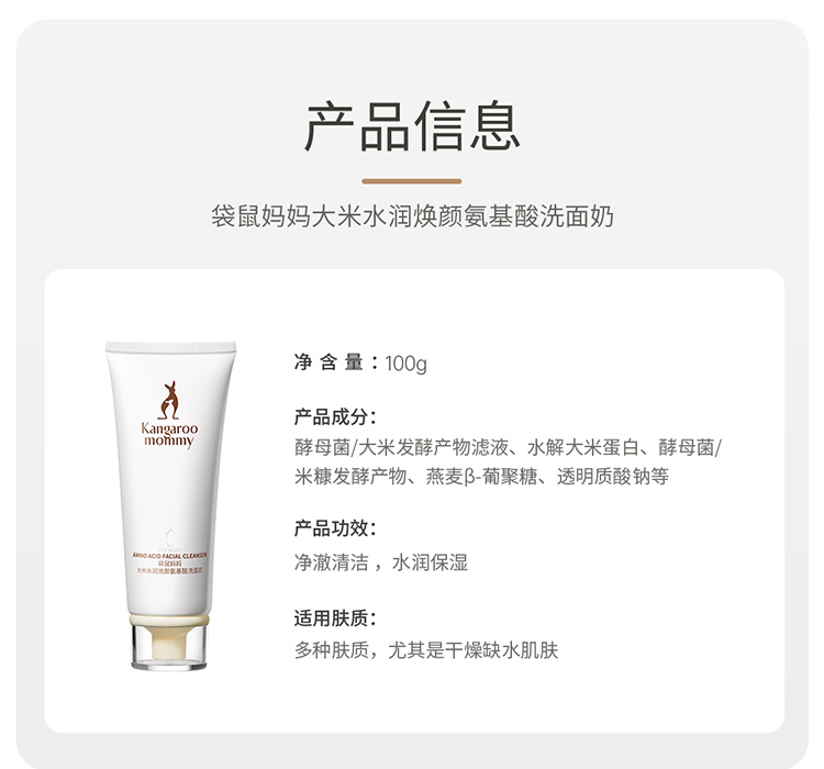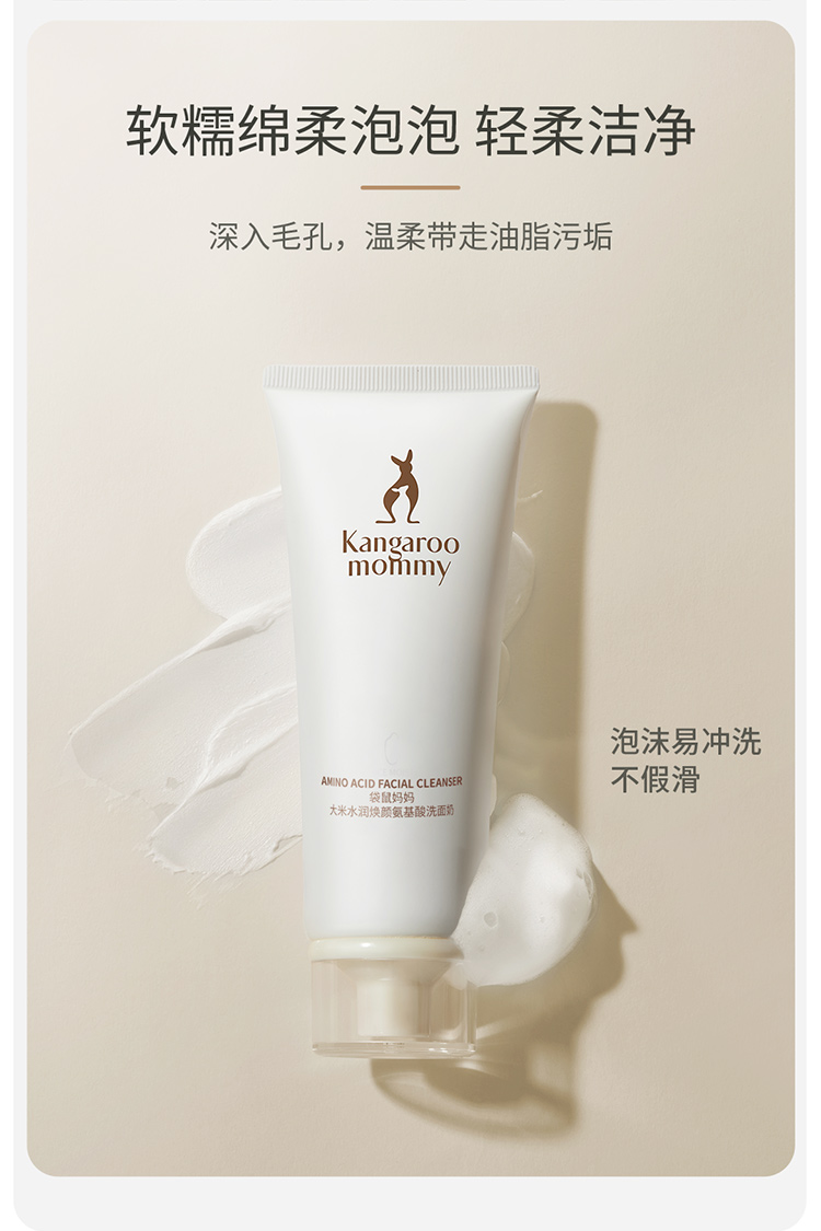 商品名称:【洗面奶】袋鼠妈妈大米保湿氨基酸洁面乳清洁洗面奶准孕妇学生适用护肤品旗舰店100g