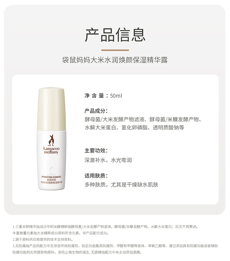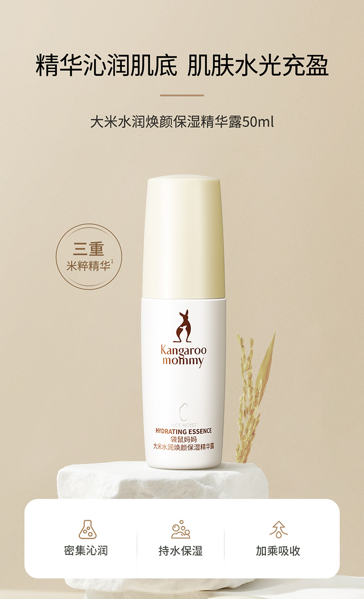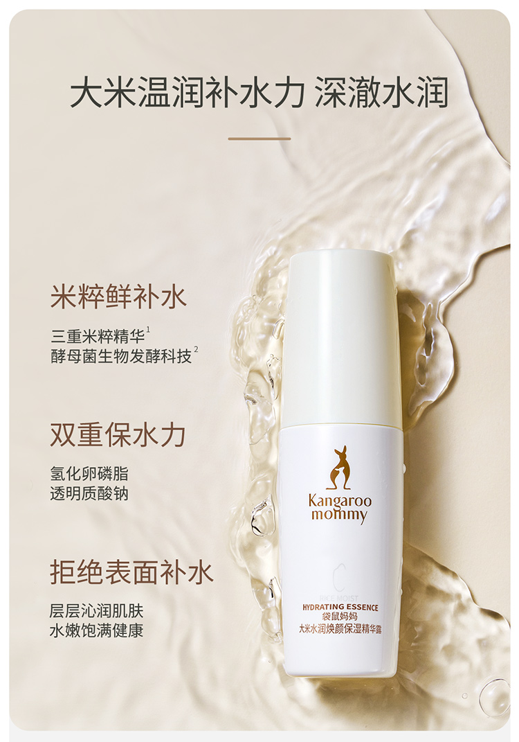 商品名称:【精华液】袋鼠妈妈大米水润焕颜面部保湿精华露补水保湿精华液透亮准孕妇护肤品50ml