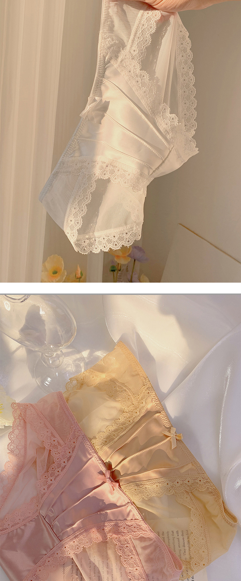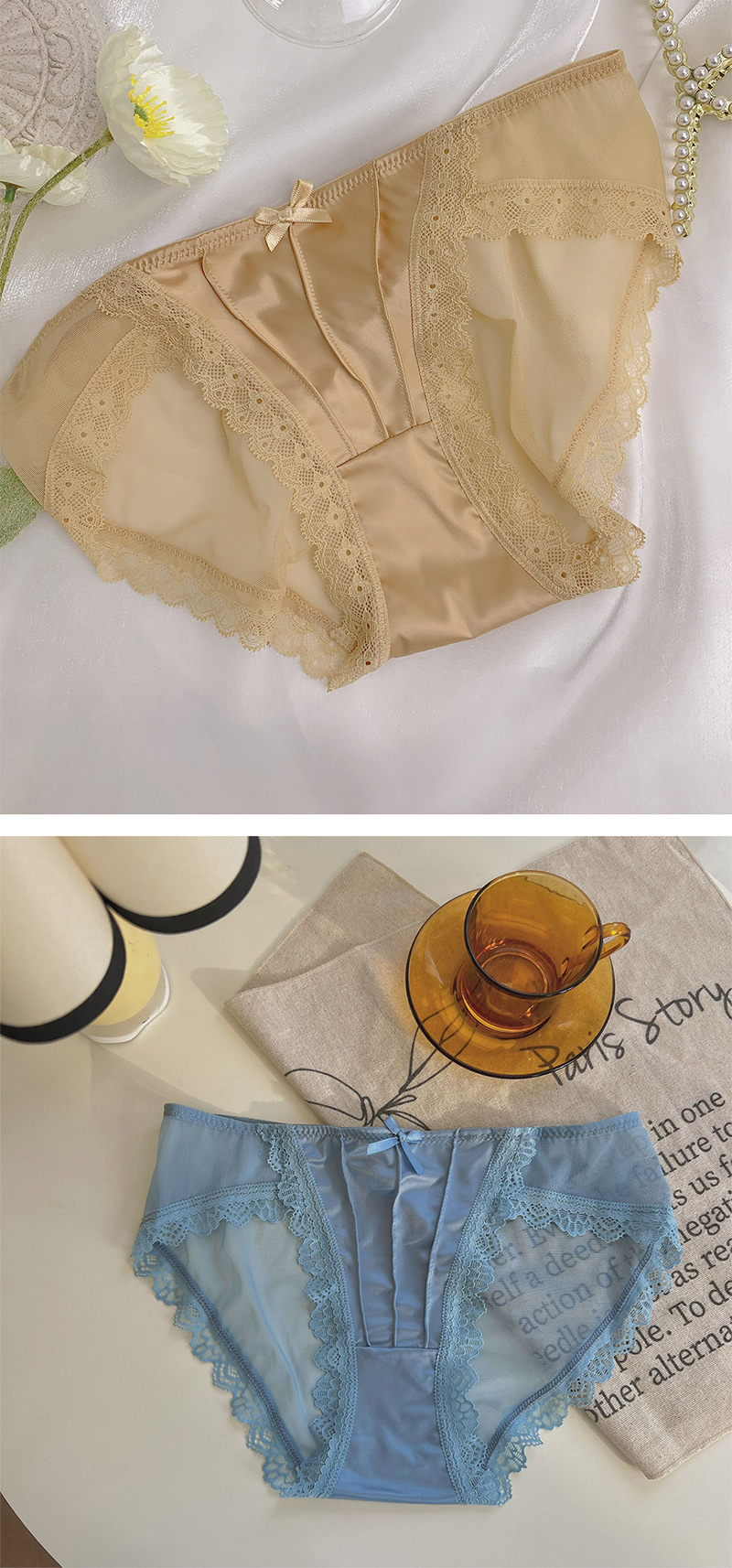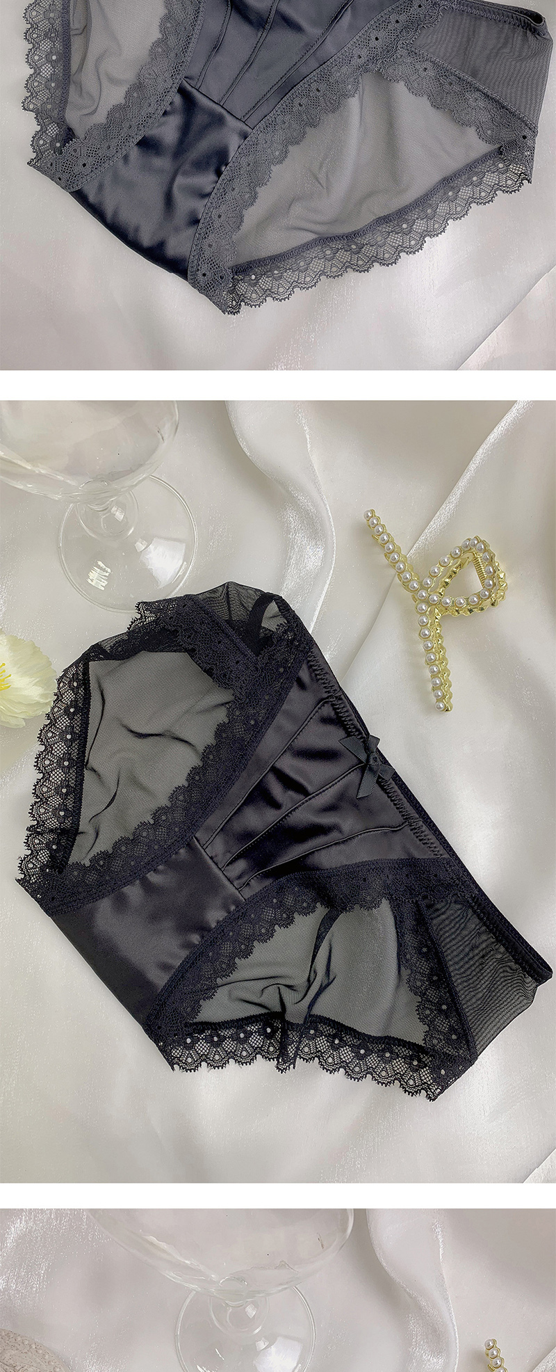 商品名称:【3条装-包邮】 伊卡安法式复古缎面内裤女士低腰纯欲蕾丝性感网纱透气纯棉档三角裤