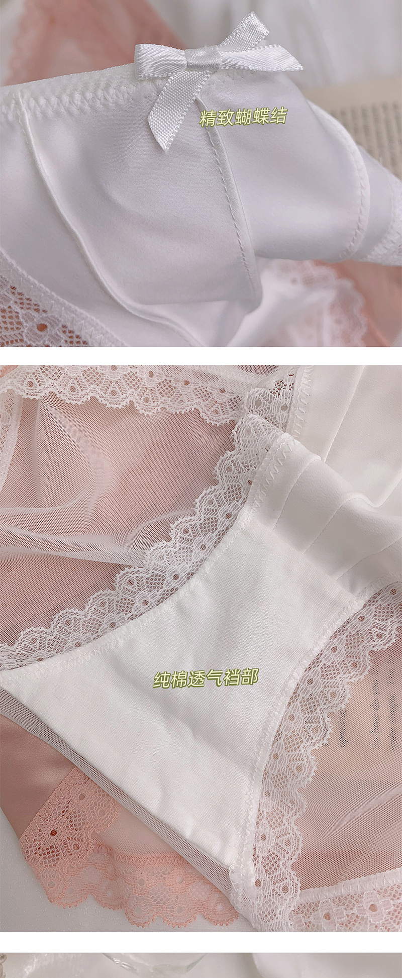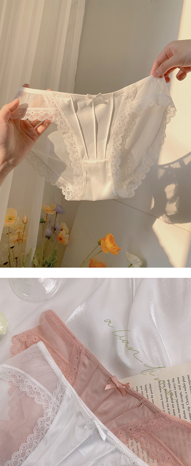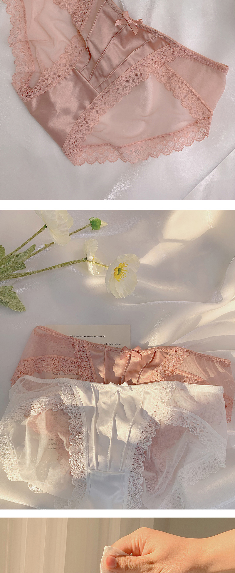 商品名称:【3条装-包邮】 伊卡安法式复古缎面内裤女士低腰纯欲蕾丝性感网纱透气纯棉档三角裤