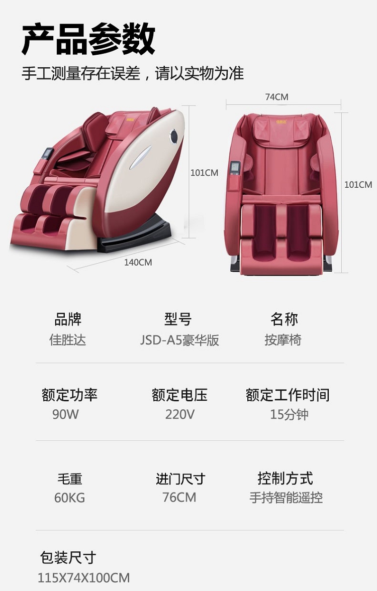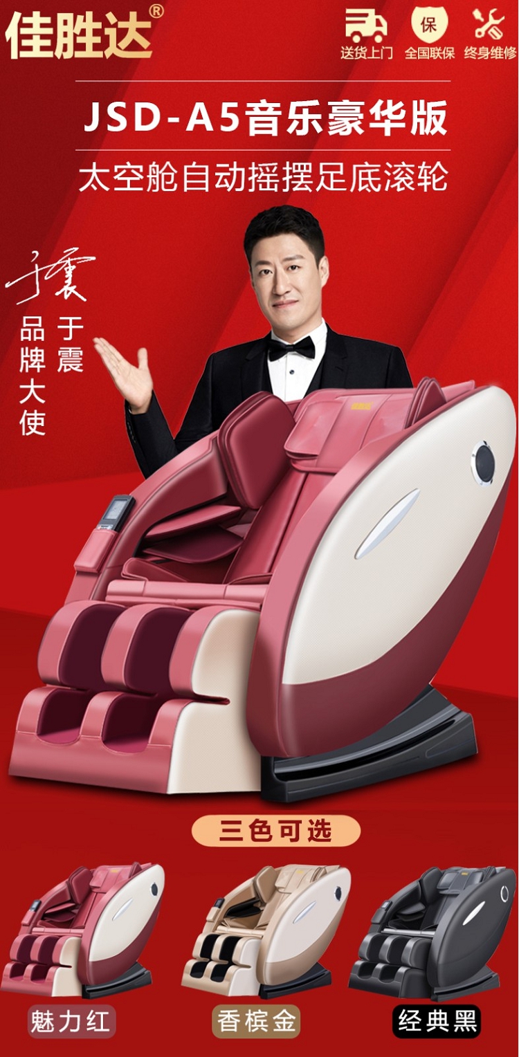 商品名称:佳胜达按摩椅JSD-A5豪华版音乐太空豪华舱自动摇摆新款电动揉捏足底滚轮按摩