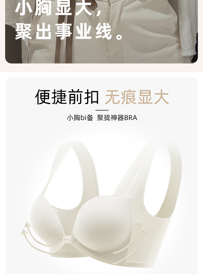 万倩无痕小胸聚拢显大女士内衣无钢圈收副乳防下垂调整型前扣美背文胸女