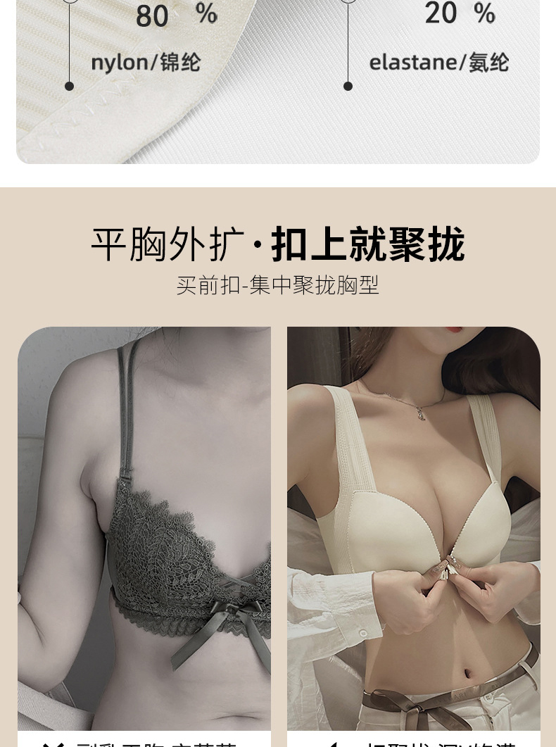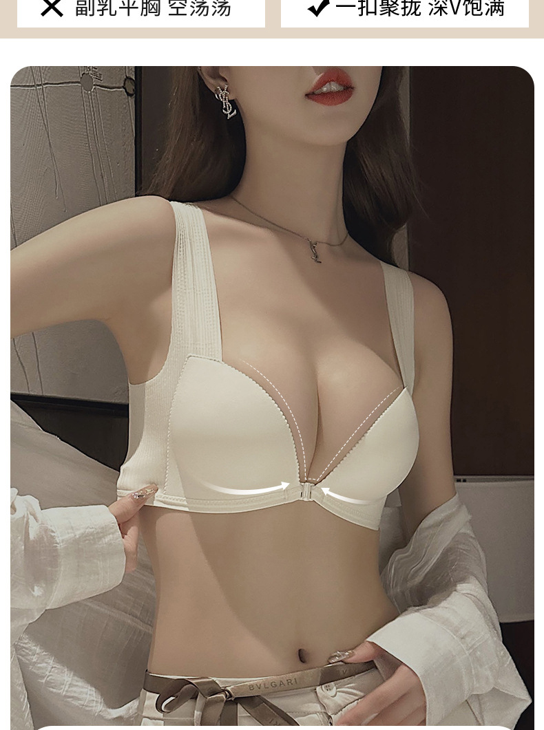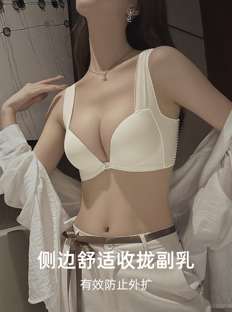 商品名称:万倩无痕小胸聚拢显大女士内衣无钢圈收副乳防下垂调整型前扣美背文胸女
