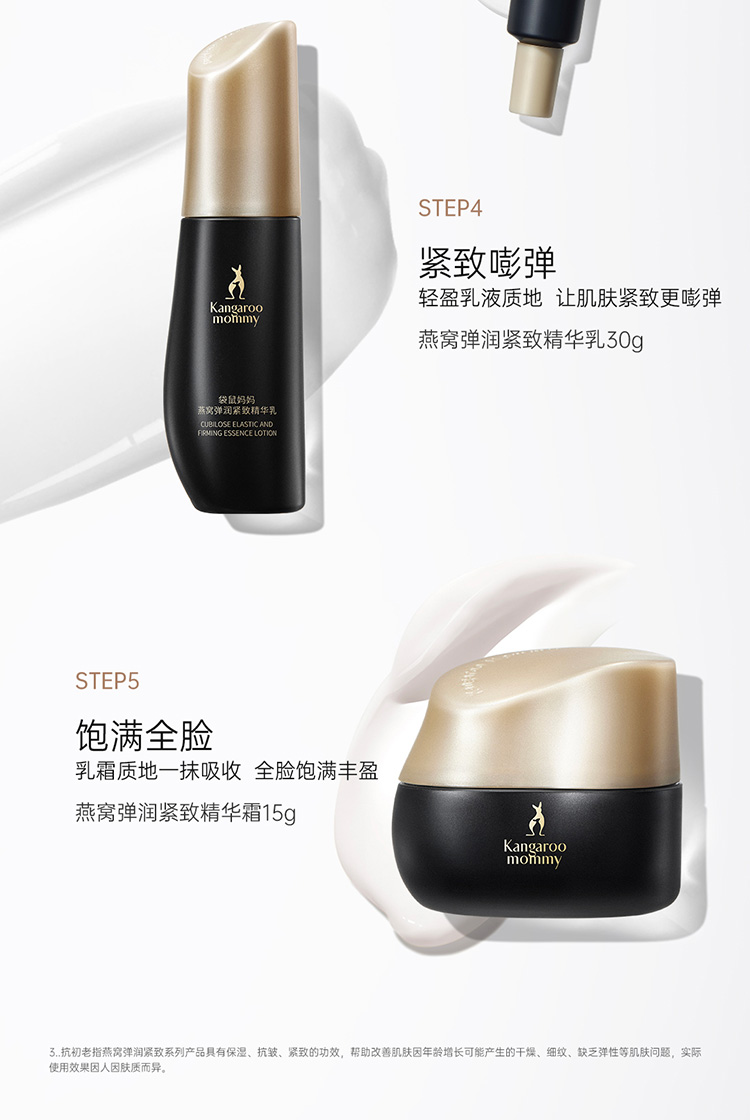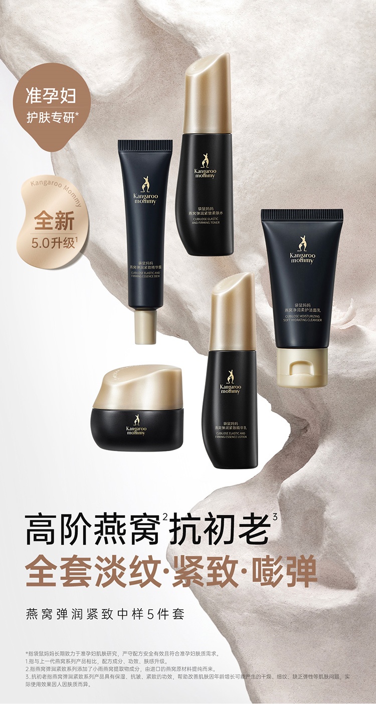 【便携5件套】袋鼠妈妈燕窝护肤品中样套装洁面水乳霜精华补水保湿紧致护肤旅行出差