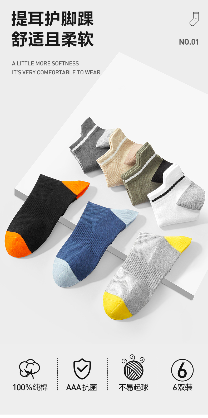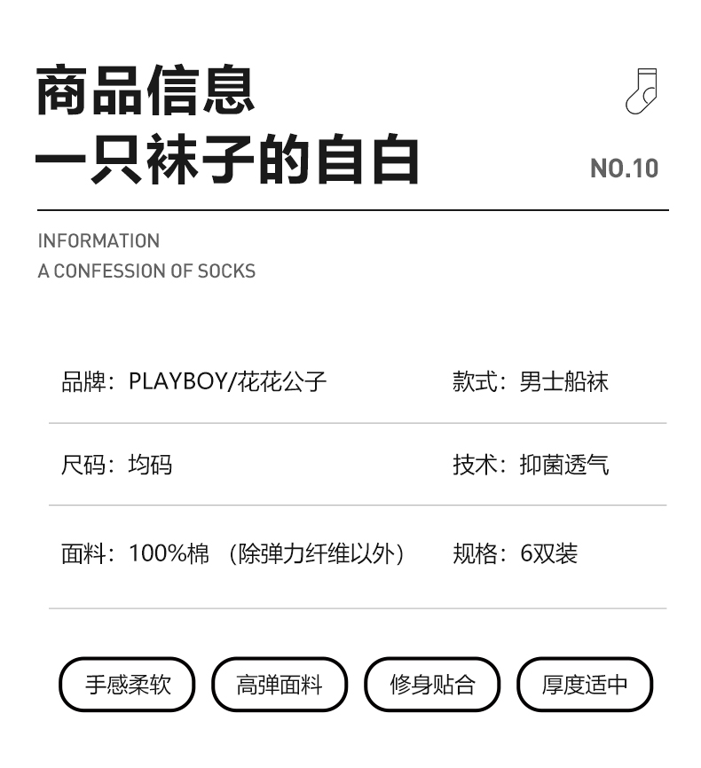 商品名称:【品牌直供】花花公子6双装男士袜子短袜春夏季纯棉防臭吸汗运动船袜全棉百棉男袜子