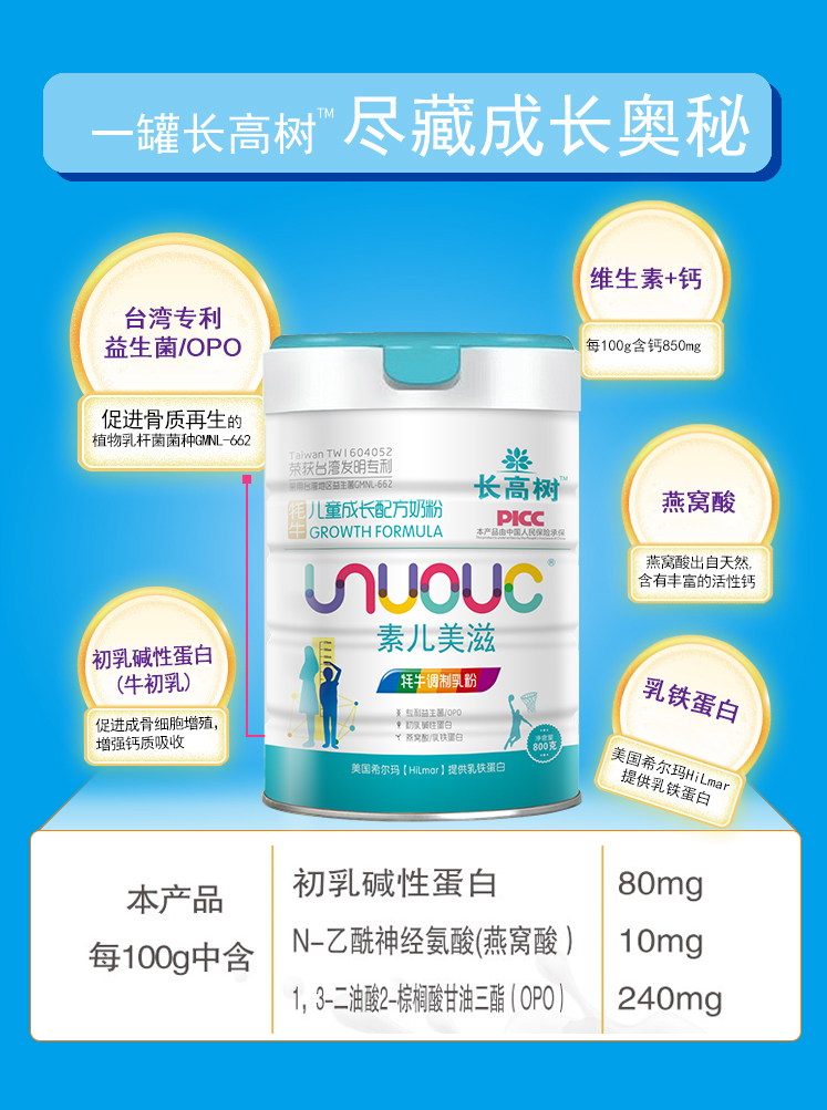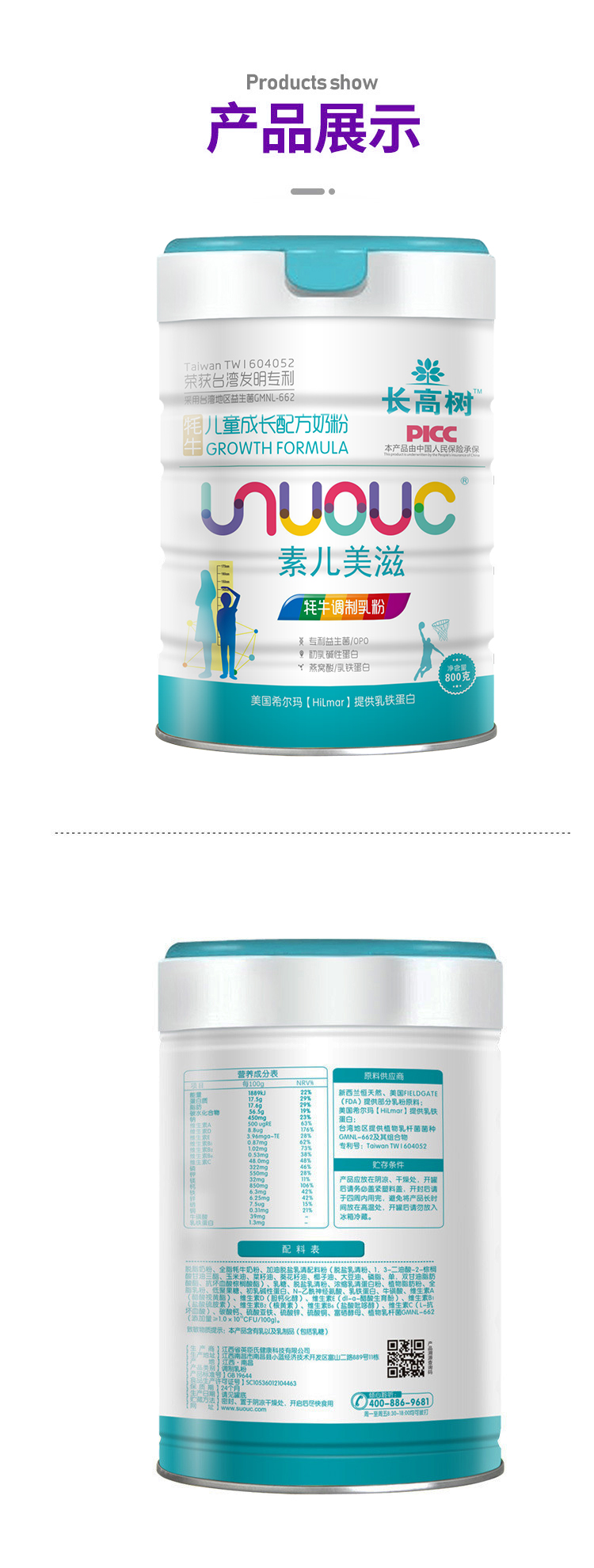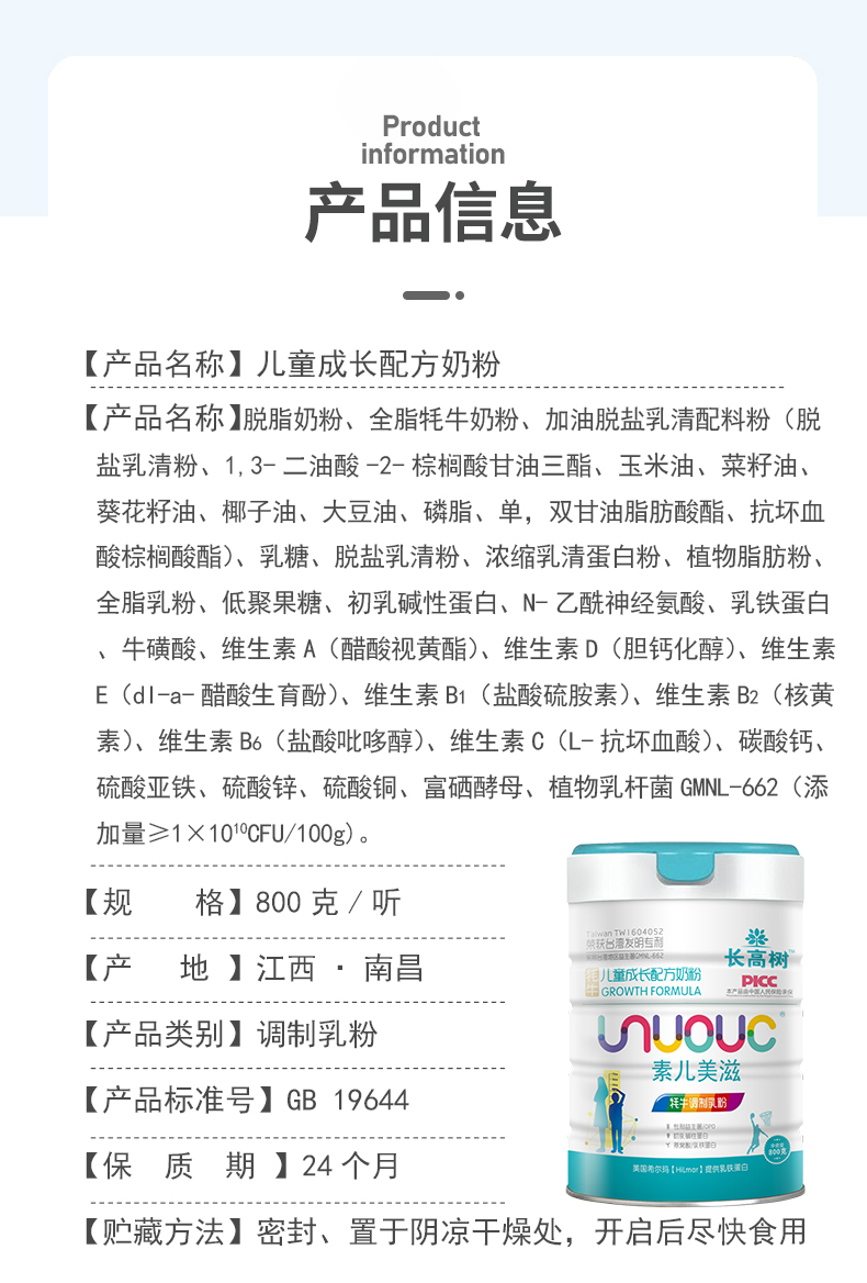 商品名称:【2:1送礼品袋】儿童长高成长配方耗牛调制营养乳粉奶粉3-15岁800g罐装