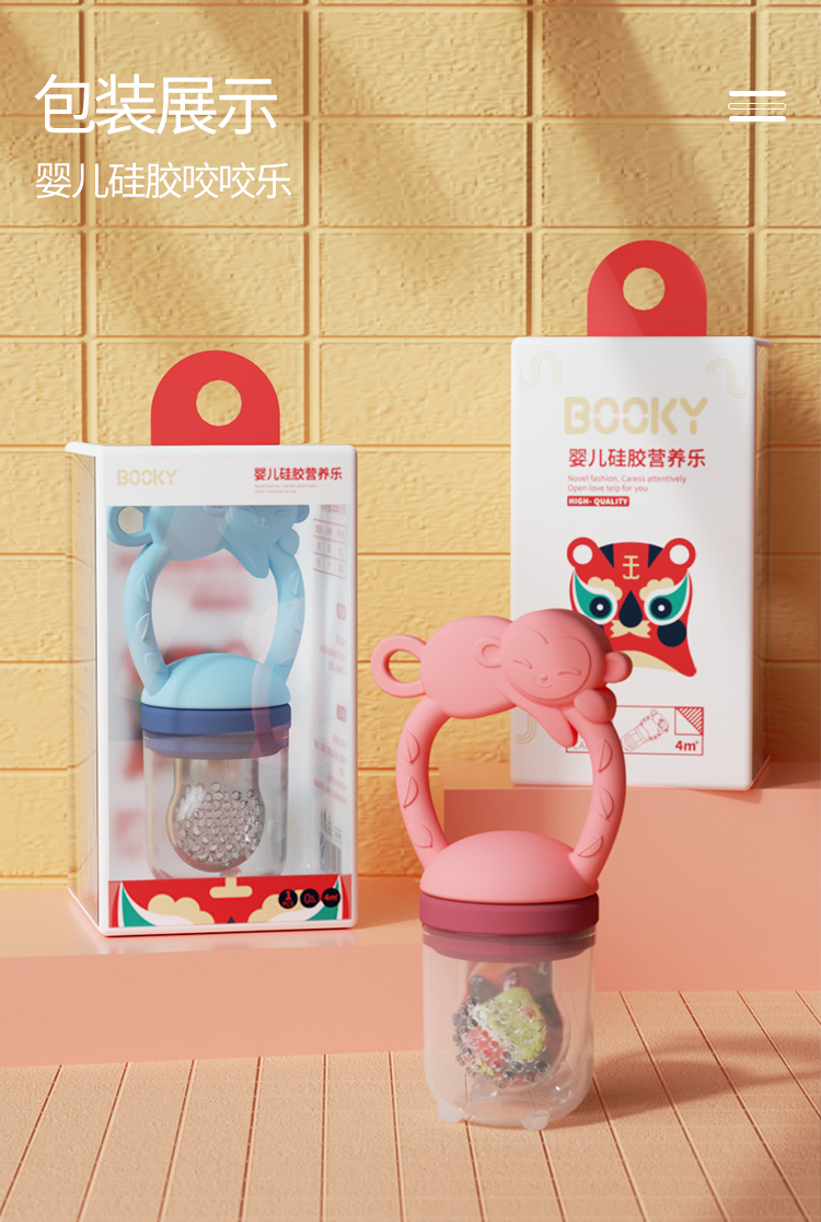 布奇BOOKY婴儿果汁咬咬乐硅胶牙胶宝宝吃水果辅食神器果蔬磨牙棒咬咬袋安抚奶嘴