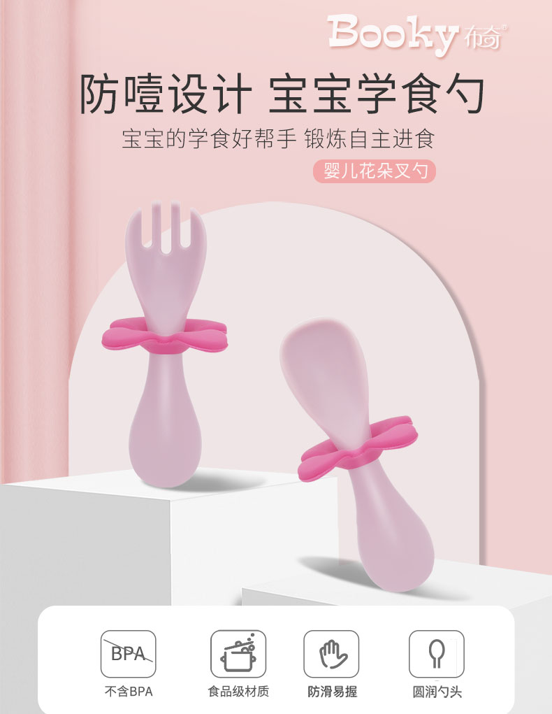 商品名称:布奇BOOKY爆款短柄宝宝学吃饭训练学食叉勺子套装婴儿辅食餐具