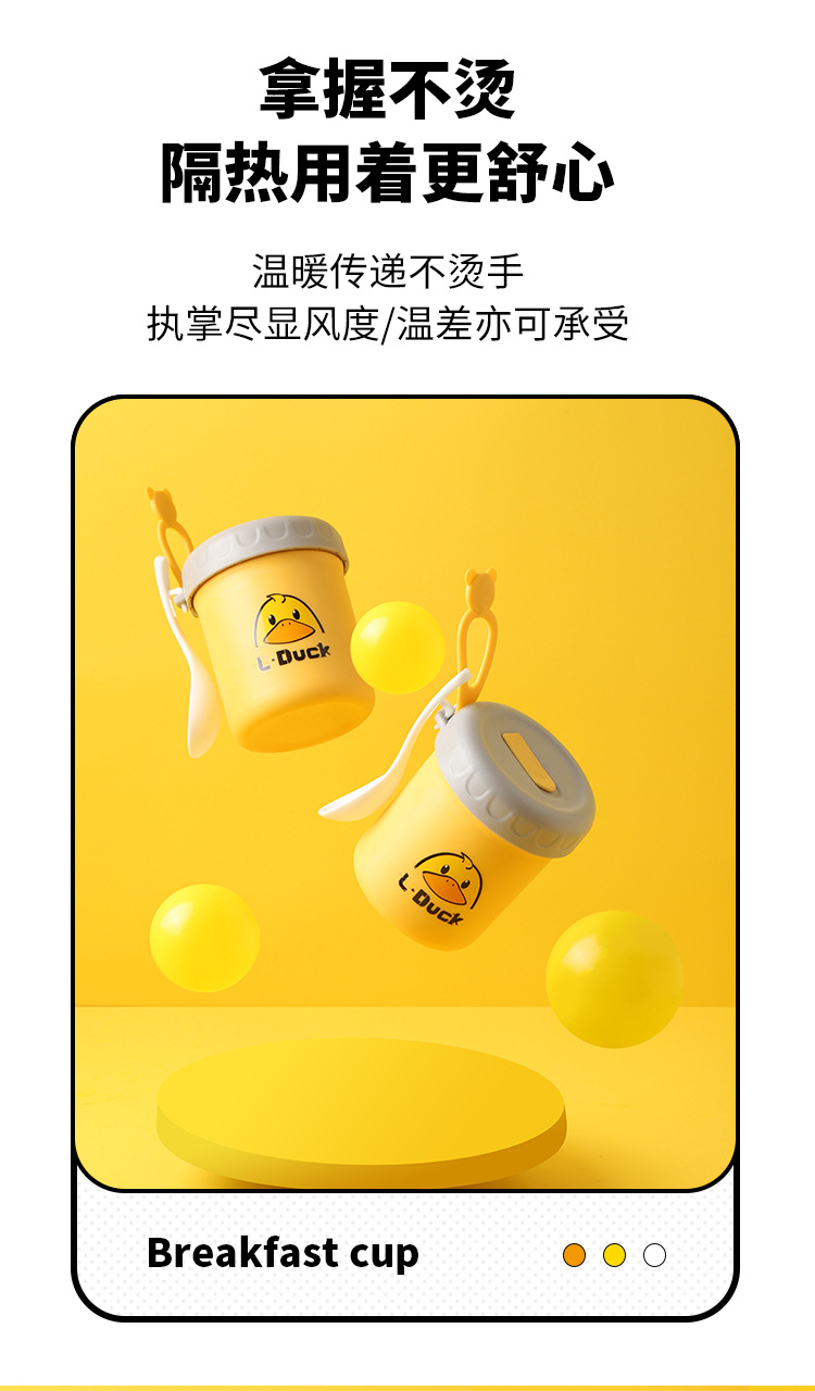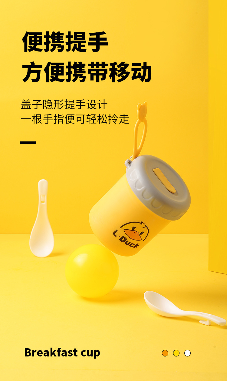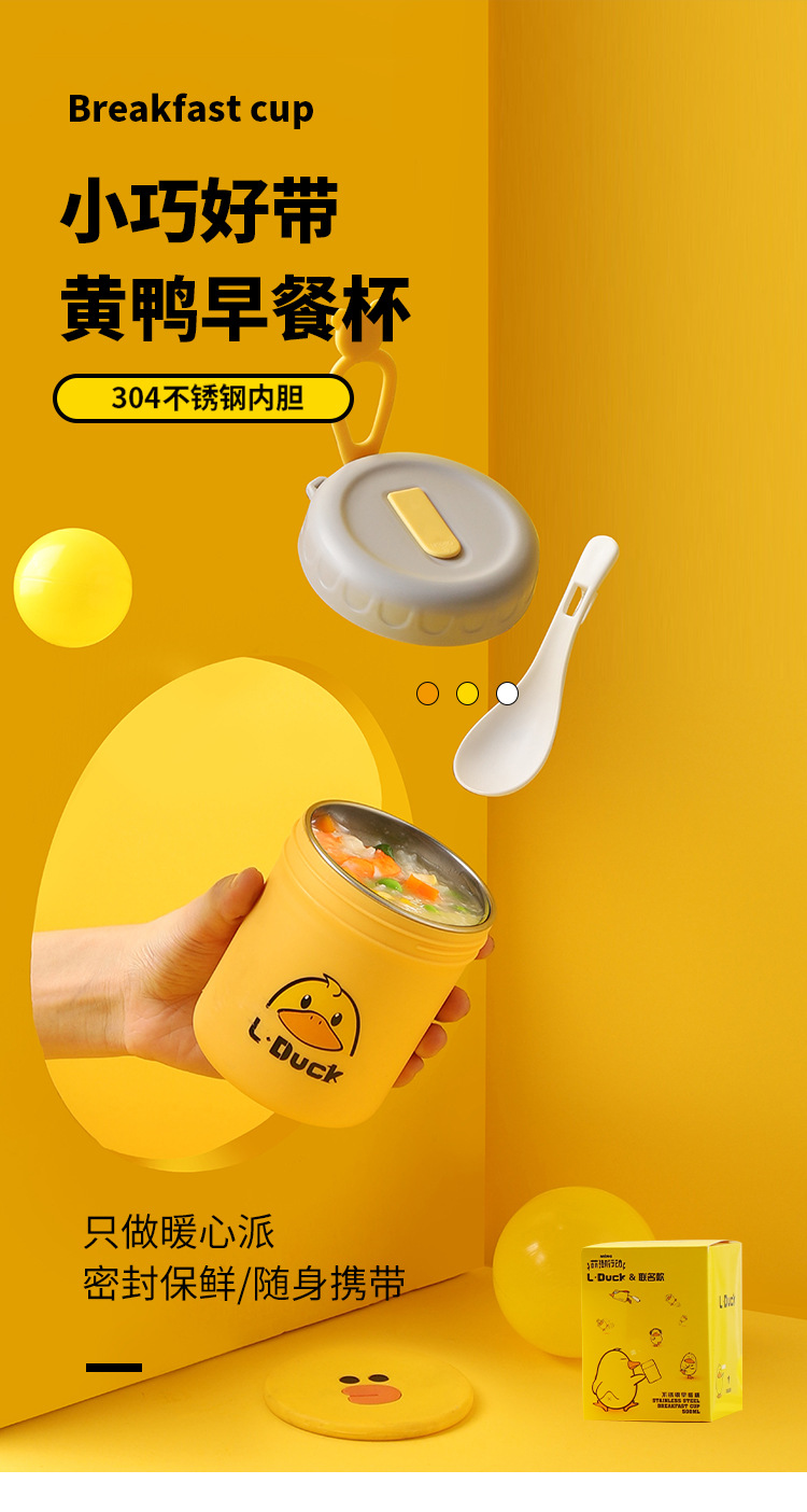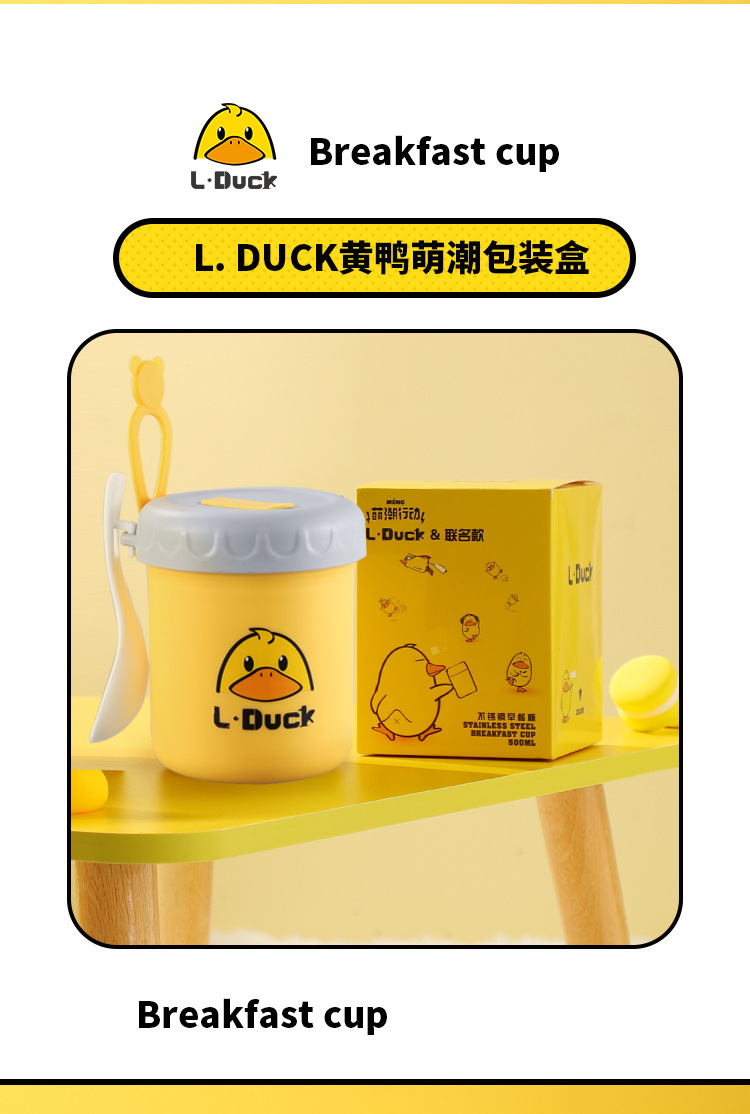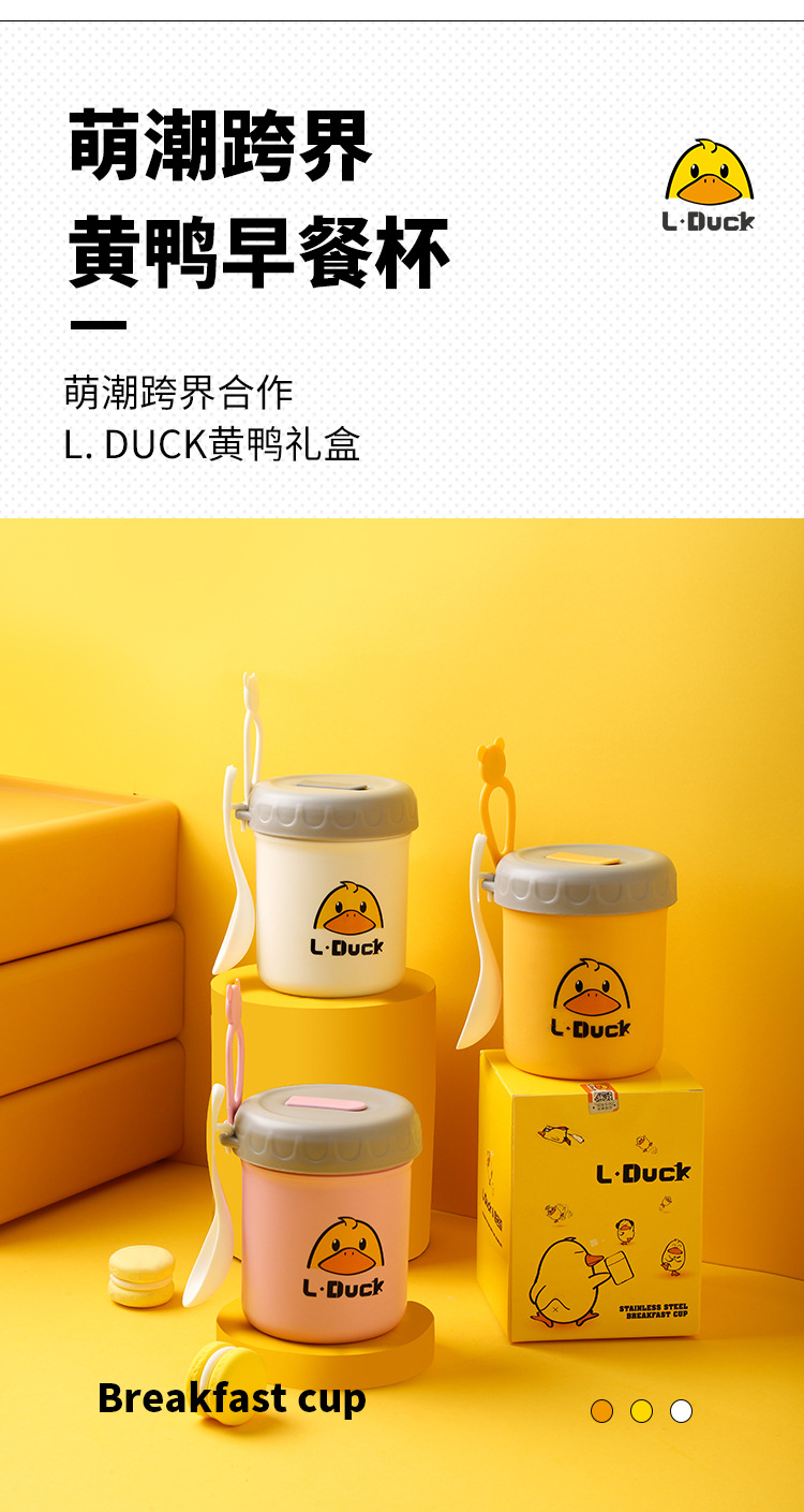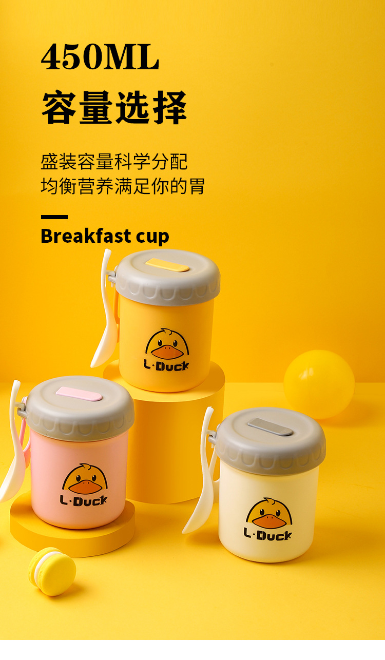 商品名称:L.DUCK小黄鸭联名早餐杯子便携随手带盖勺燕麦杯外带豆浆双层防摔饭盒便当