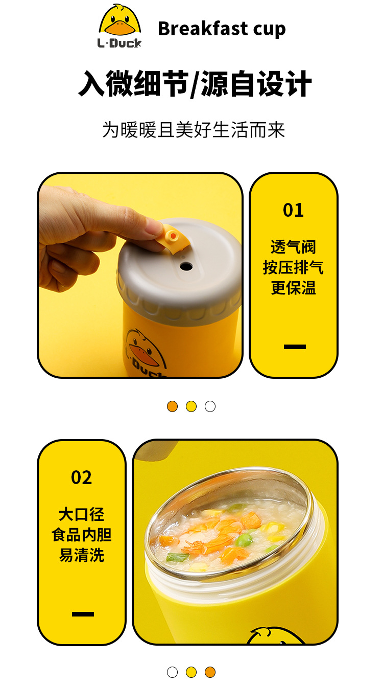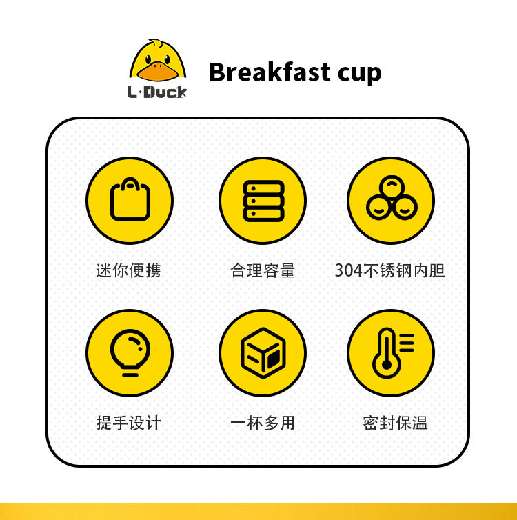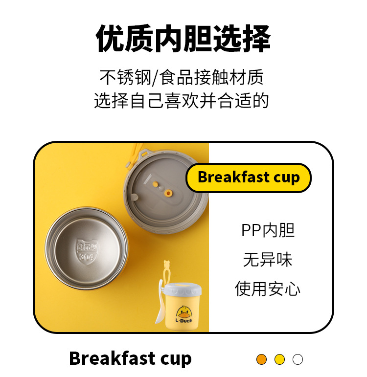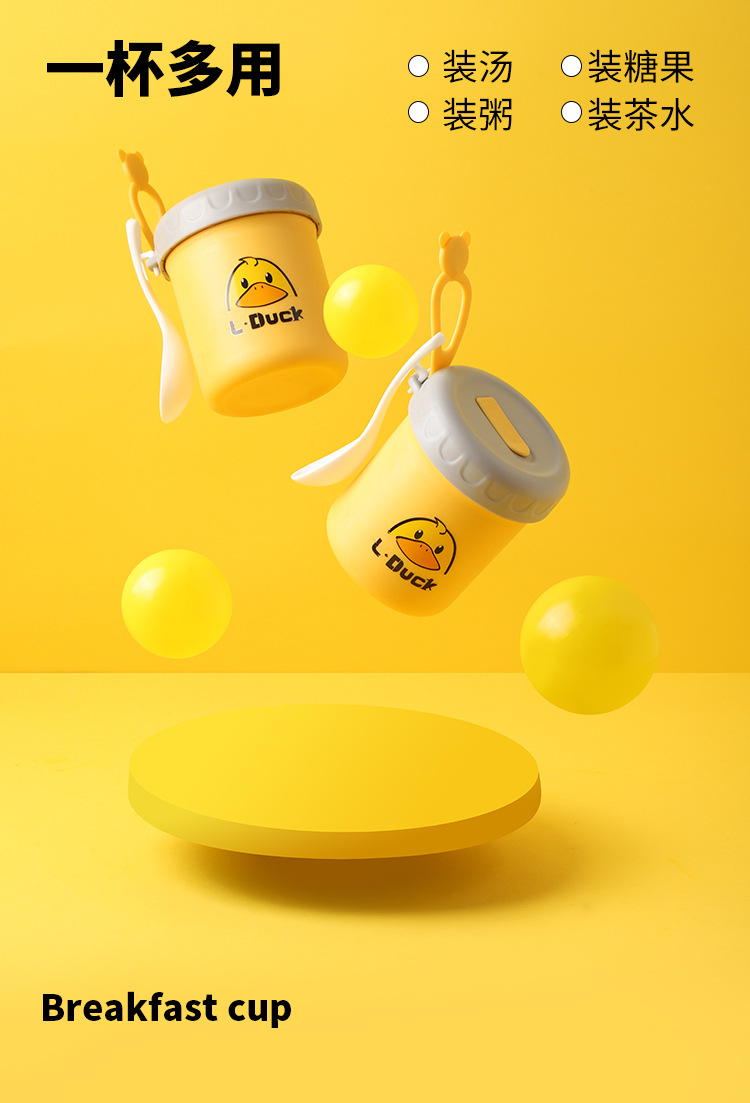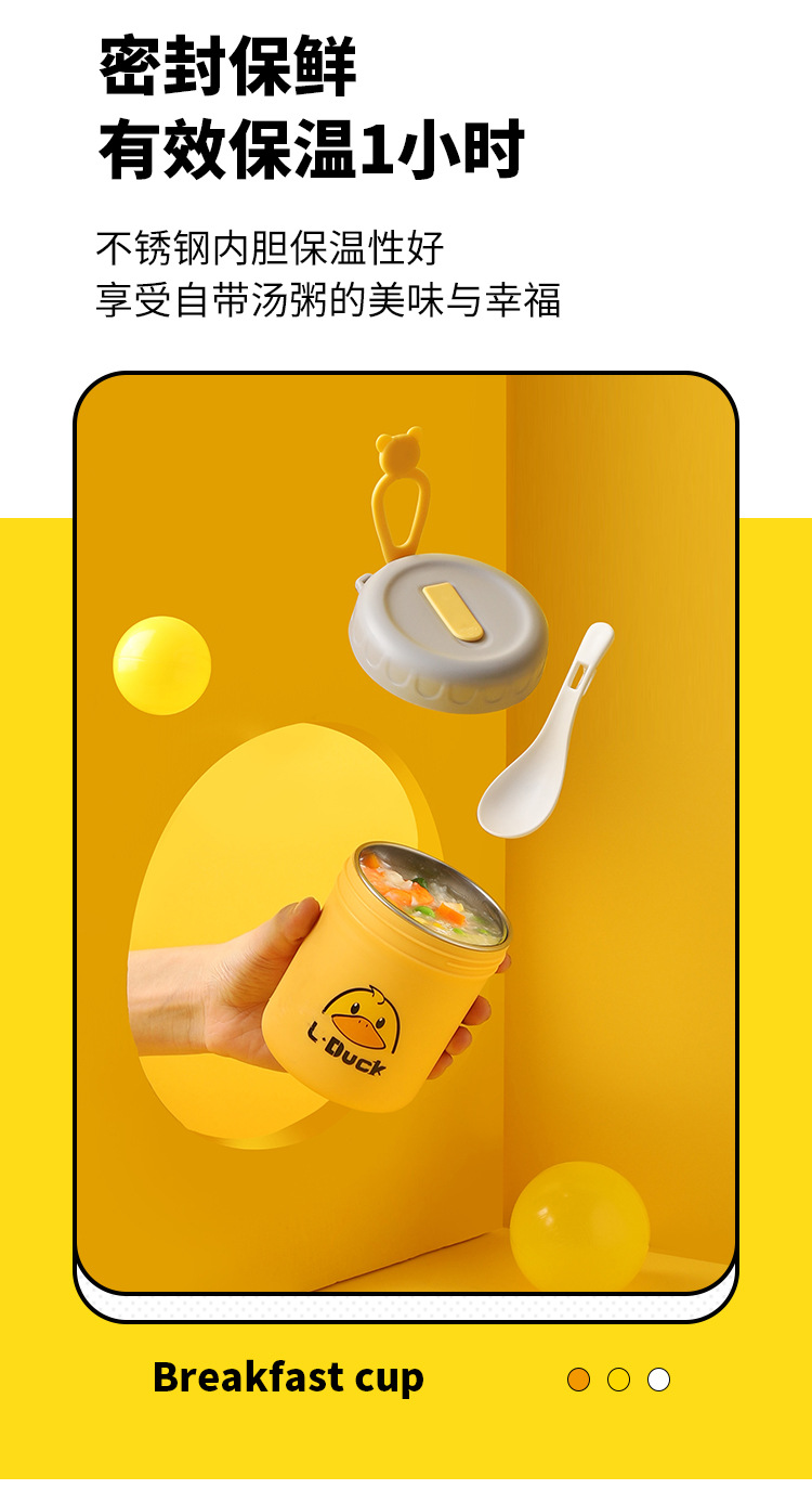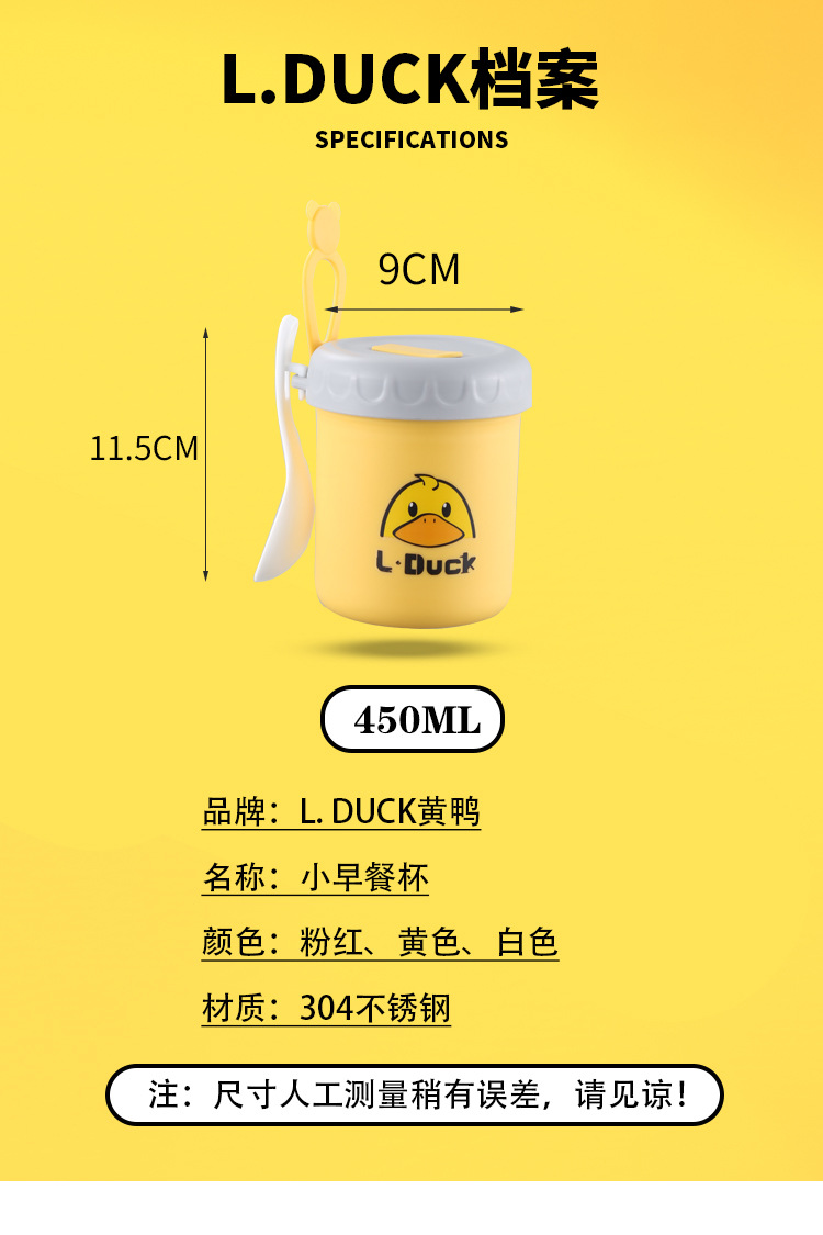 商品名称:L.DUCK小黄鸭联名早餐杯子便携随手带盖勺燕麦杯外带豆浆双层防摔饭盒便当
