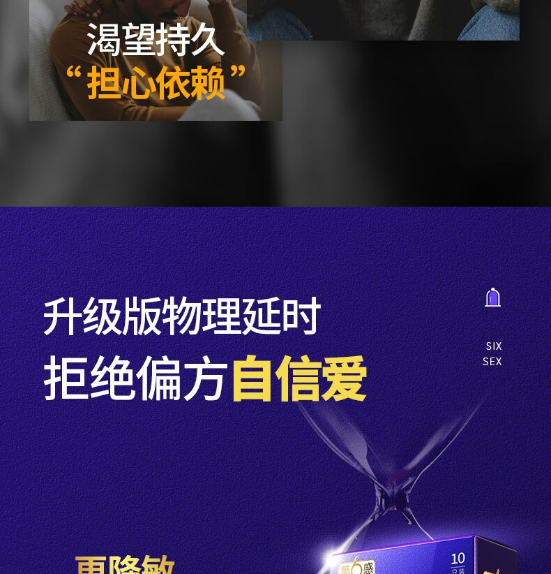 第六感 物理持久避孕套 安全套延时加厚颈环降敏情趣套套 成人计生性用品 物理延时10只