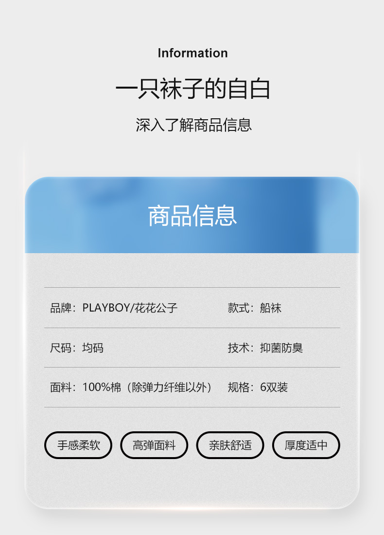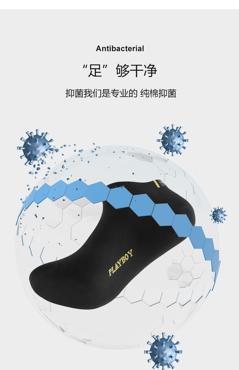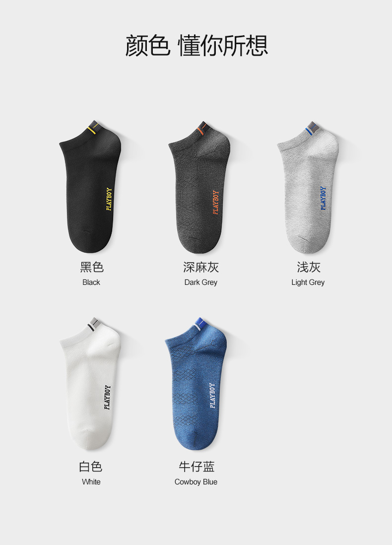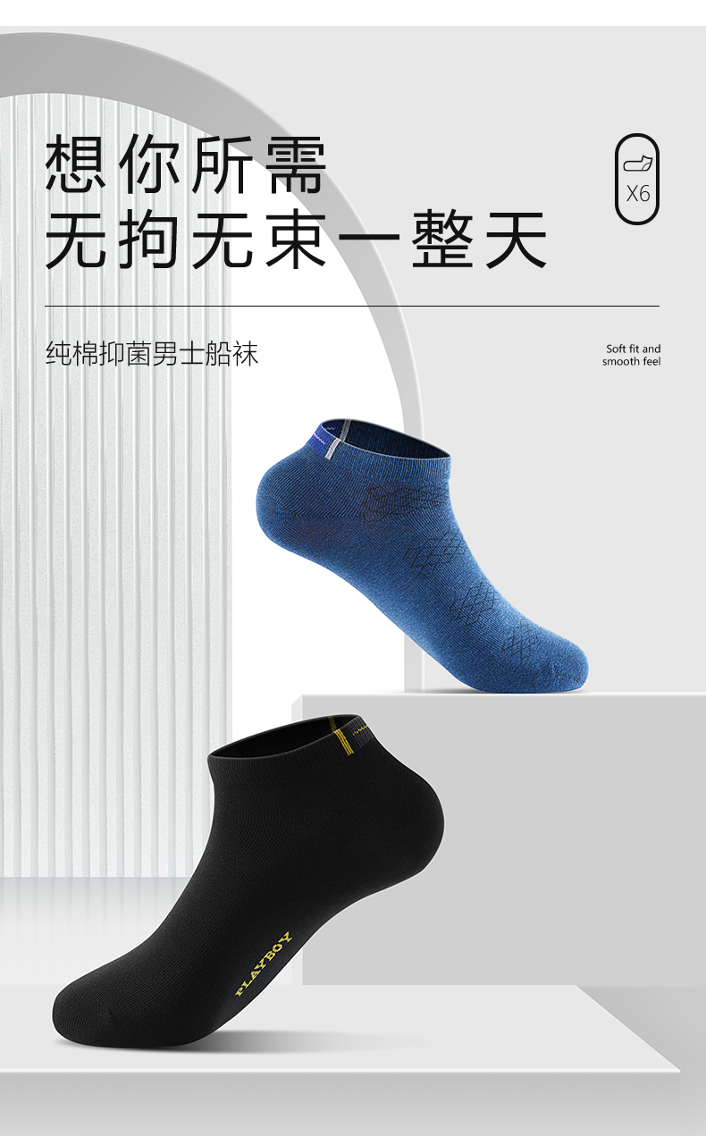 商品名称:花花公子6双男士短袜纯棉防臭吸汗男袜男船袜子全棉透气抗菌休闲袜子