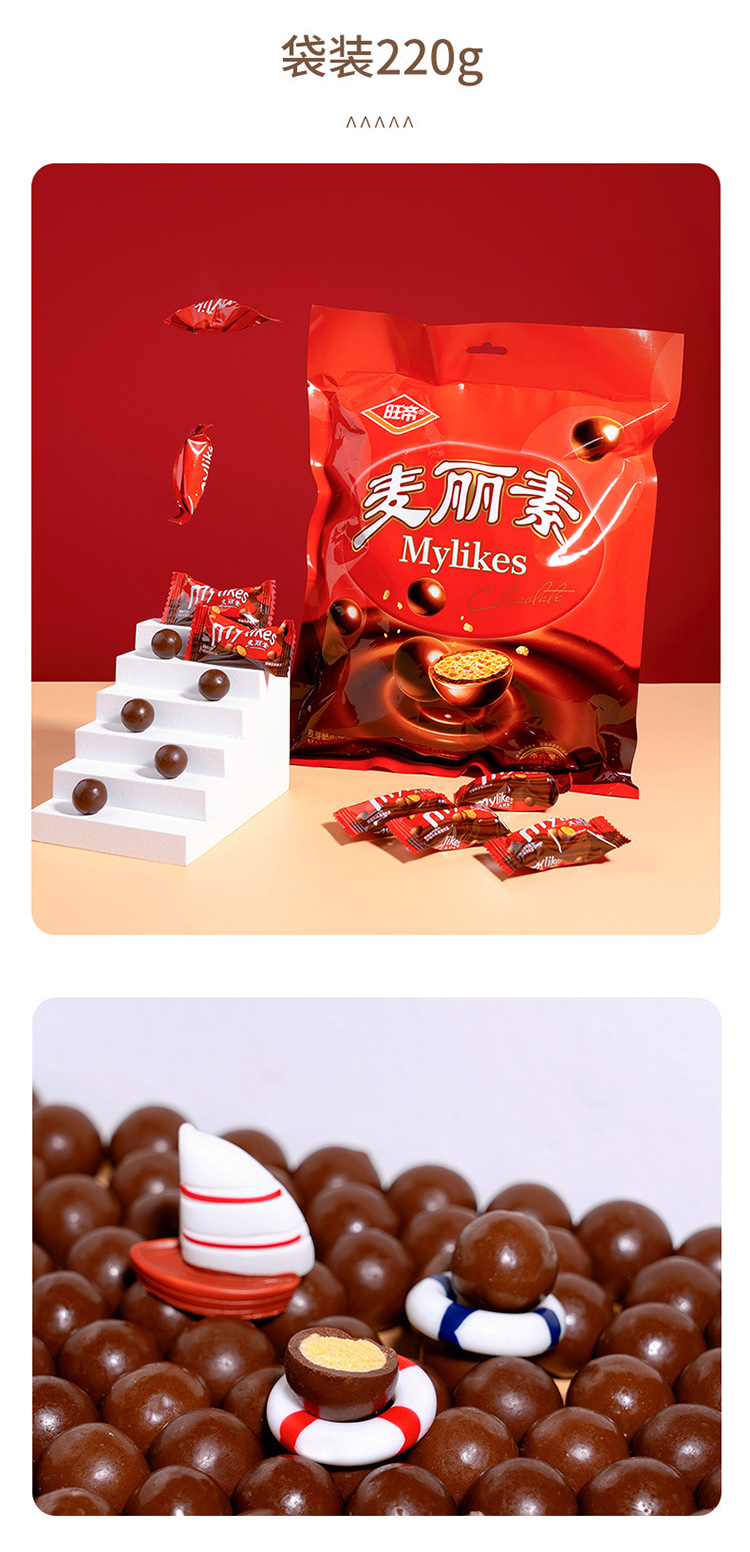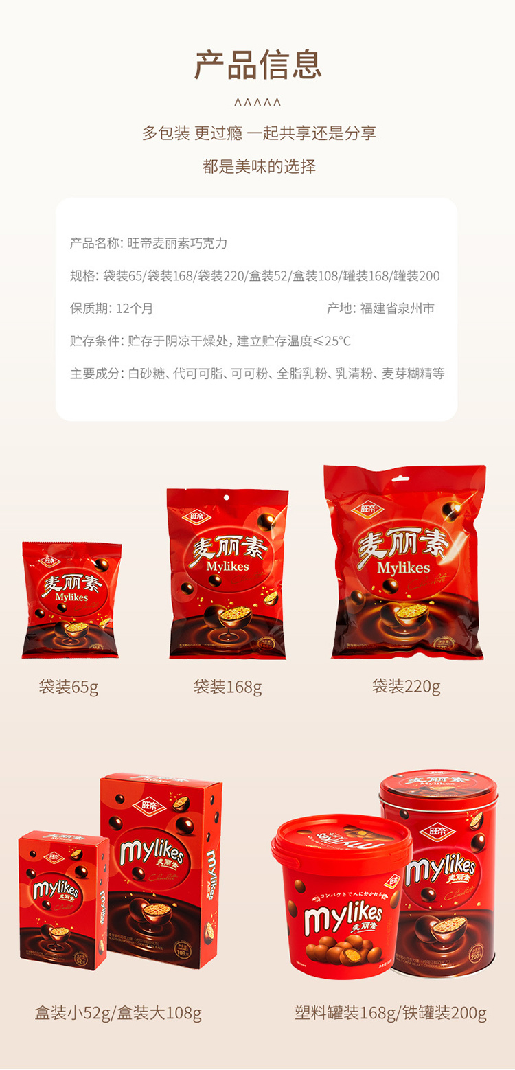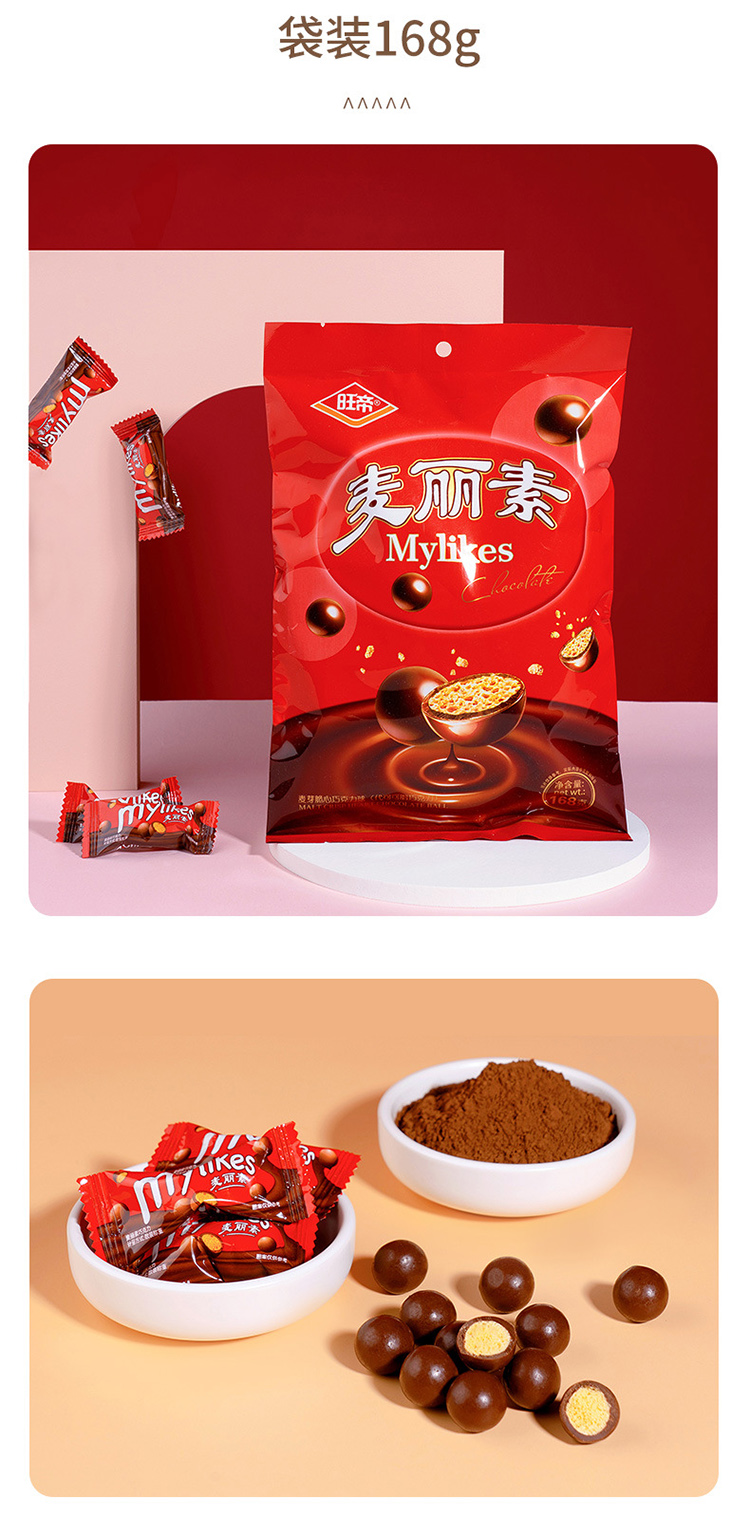 商品名称:旺帝麦丽素桶装168g巧克力豆休闲零食糖果巧克力豆