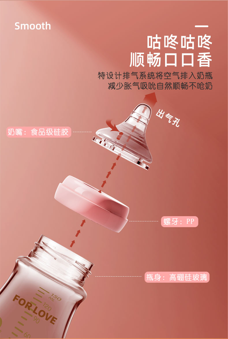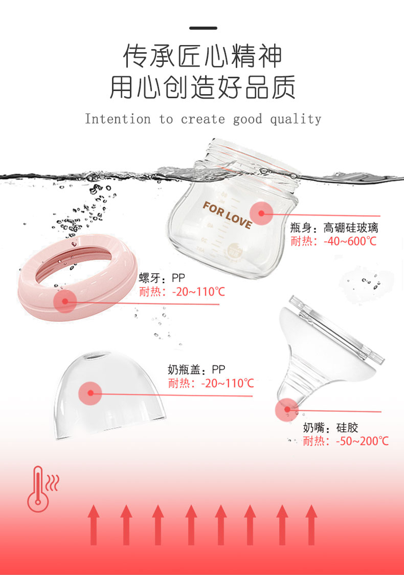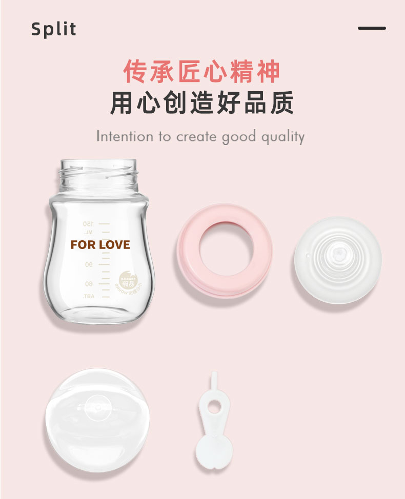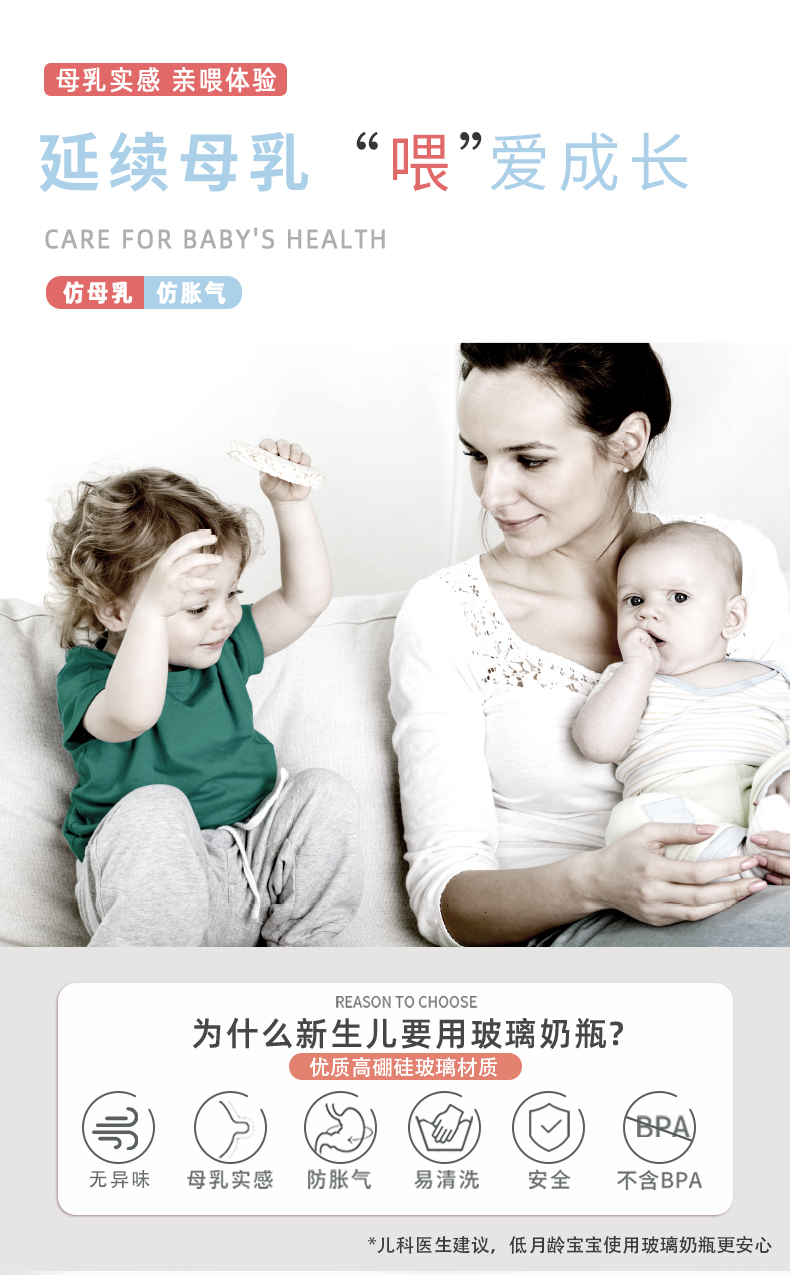 商品名称:【1:1送奶瓶刷】布奇BOOKY新生儿宽口径玻璃奶瓶防呛防胀气喝水喂药小奶瓶80ML/150ML