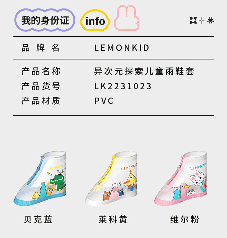 商品名称:柠檬宝宝 Lemonkid异次元探索儿童雨鞋套鞋套卡通外穿童雨鞋宝宝雨鞋套男女孩适用雨鞋套