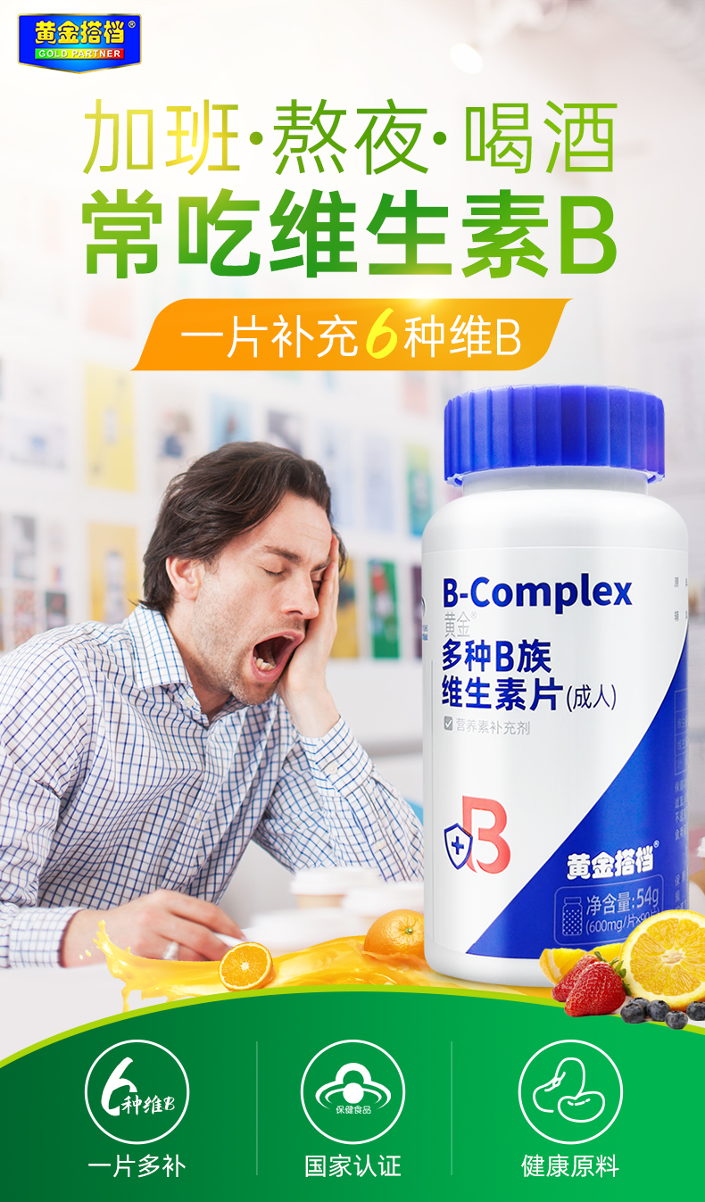 黄金搭档 维生素B族片 含vb1 维B2 B6 叶酸和B3 补充男女成人多种复合维生素600mg/片*90片