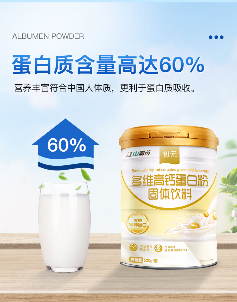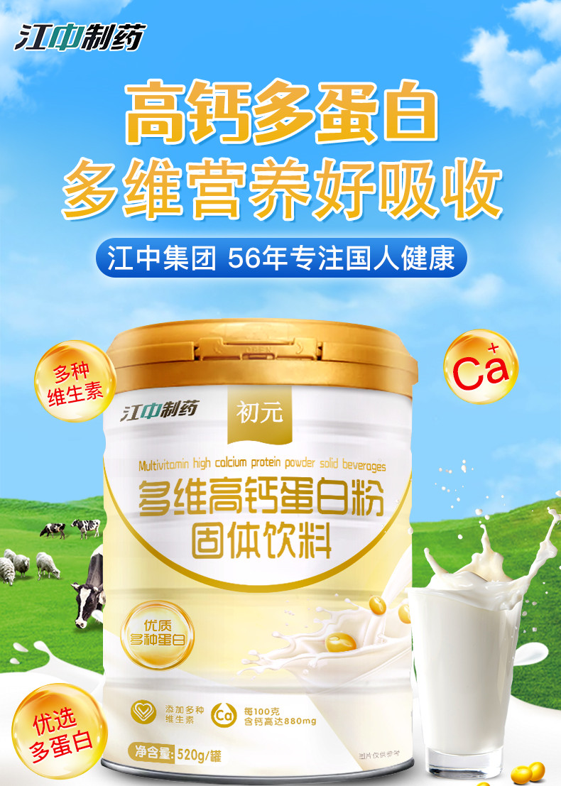 江中初元多维高钙蛋白粉520g维b大豆蛋白乳清蛋白质粉成人中老年男女免疫力配礼袋装