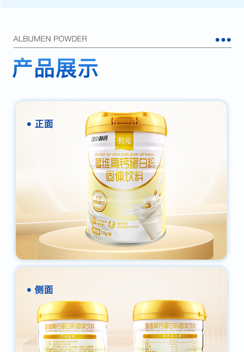商品名称:江中初元多维高钙蛋白粉520g维b大豆蛋白乳清蛋白质粉成人中老年男女免疫力配礼袋装
