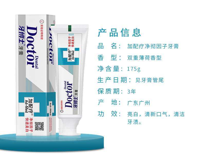 商品名称:牙博士加配疗(净彻美白)牙膏175g