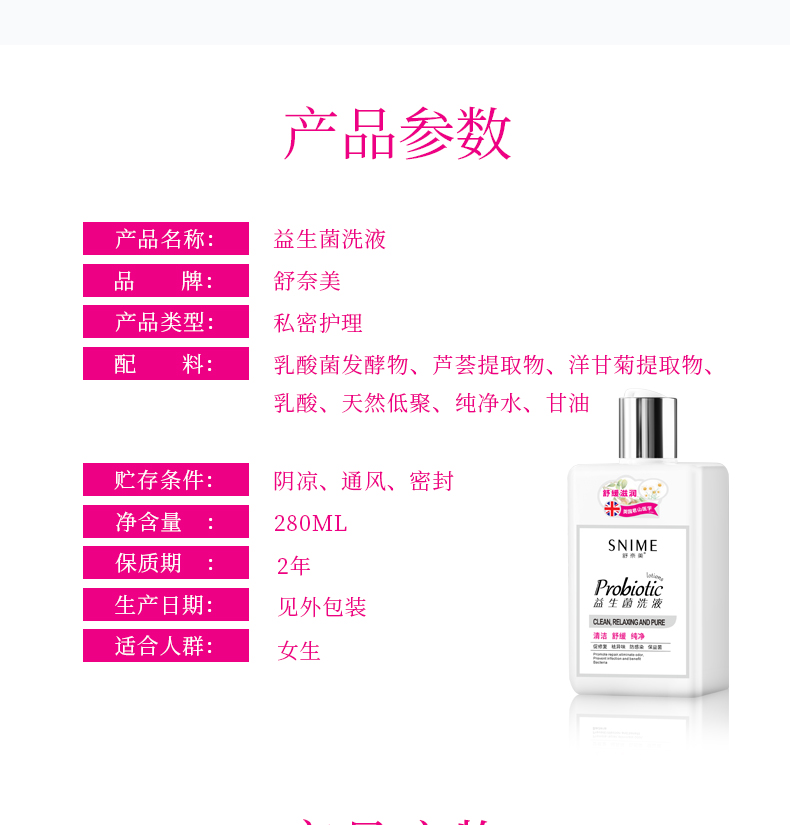 商品名称:舒奈美女士洗液私处护理杀菌去异味止痒霉菌外阴清洁益生菌护理液