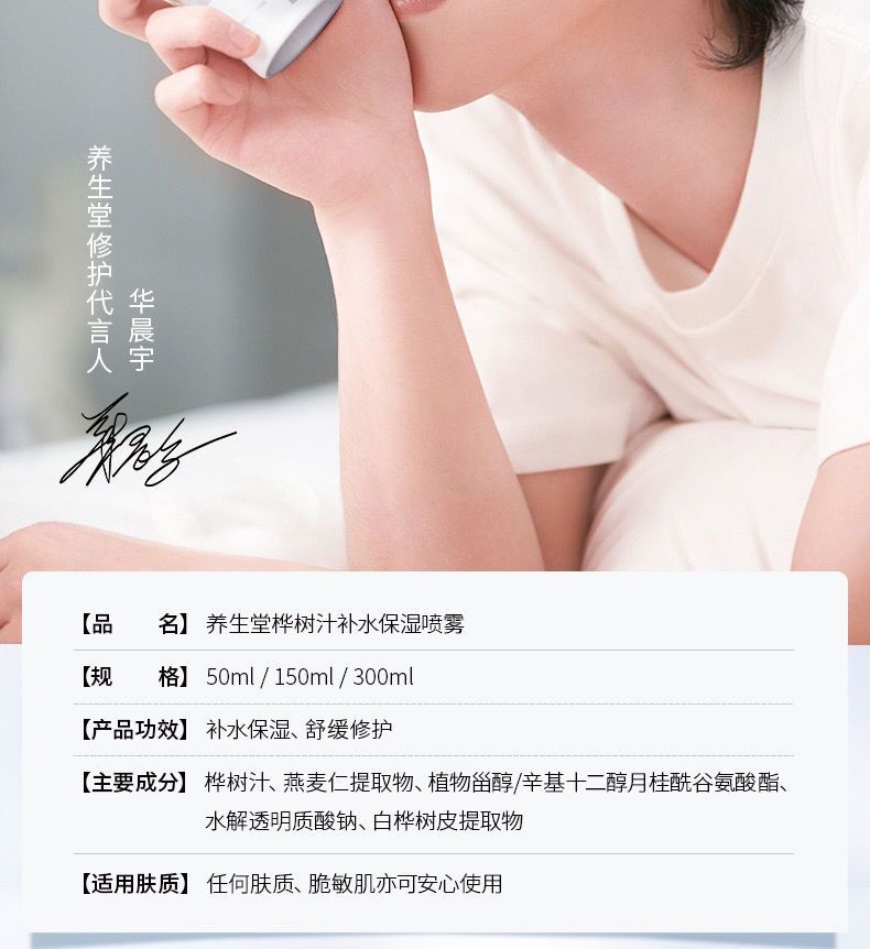 商品名称:【赠50ml】养生堂桦树汁保湿补水喷雾150ml舒缓修护肌肤不花妆滋润补水敏感肌适用