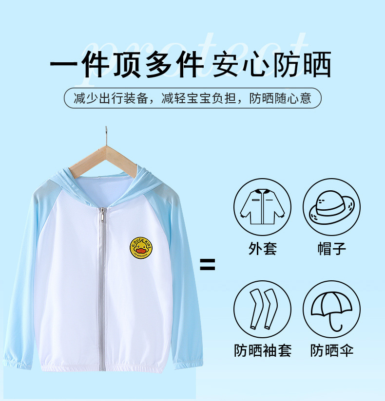 商品名称:小黄鸭儿童防晒衣男童薄款外套女童2024新款长袖防紫外线 宝宝衣服