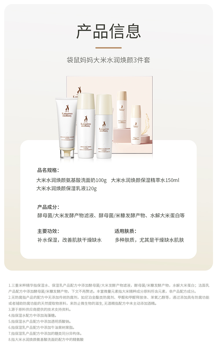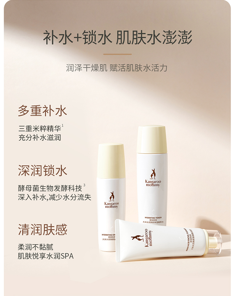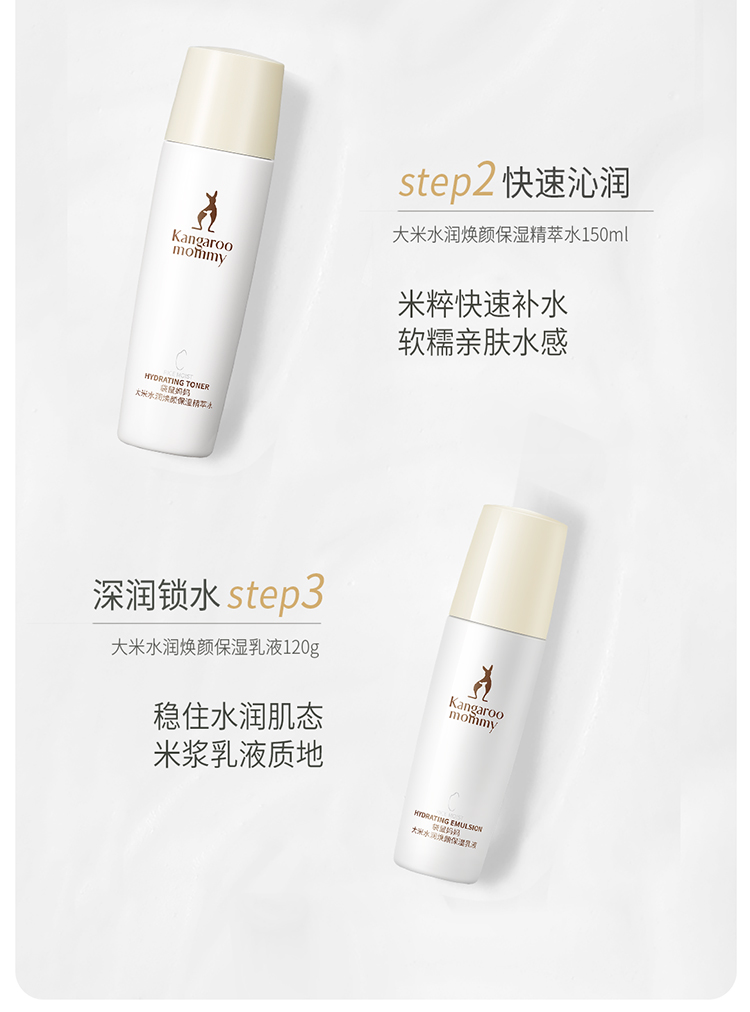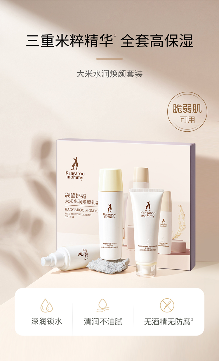 商品名称:袋鼠妈妈大米洁水乳套装秋冬补水保湿滋润准孕妇专用保湿化妆品护肤品官方正品礼盒装
