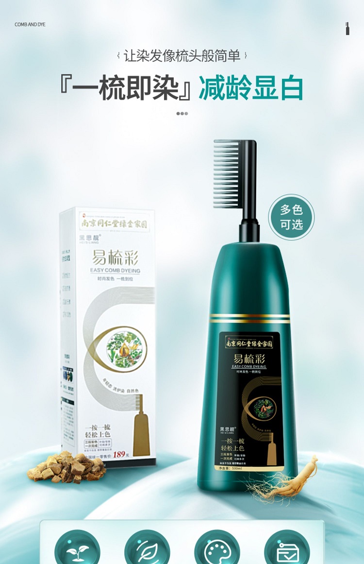 商品名称:南京同仁堂黑思靓染发剂2024流行色遮盖白发自己在家染头发膏植物天然无刺激易梳彩500ml