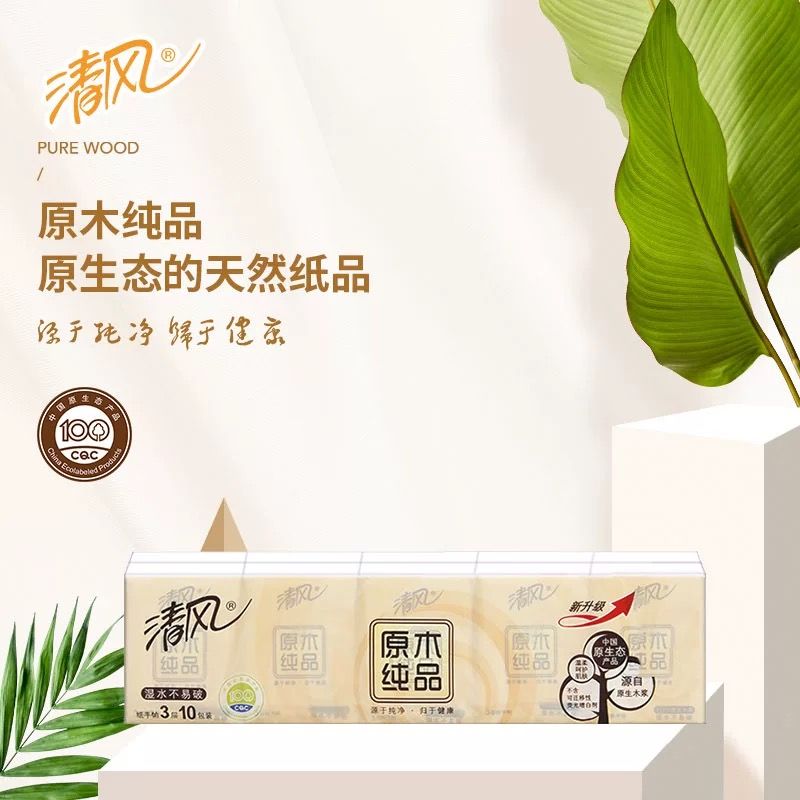 商品名称:清风 原木纯品手帕纸3层10张/包(10包/条)