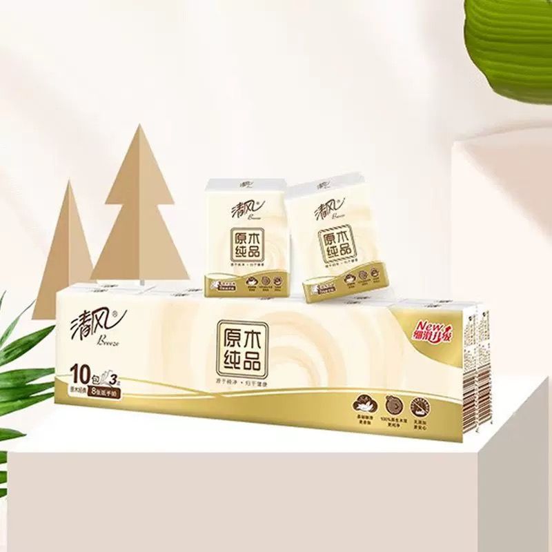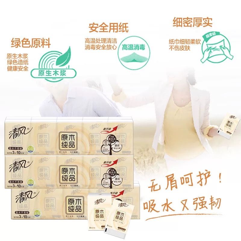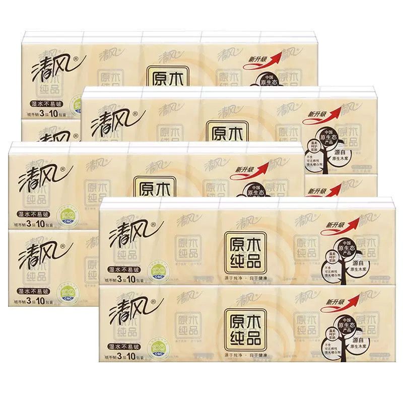 清风 原木纯品手帕纸3层10张/包(10包/条)