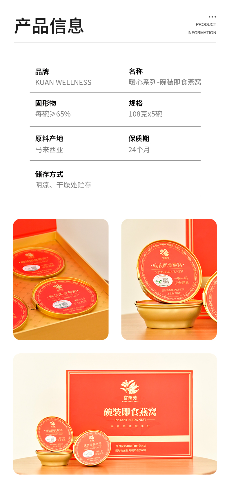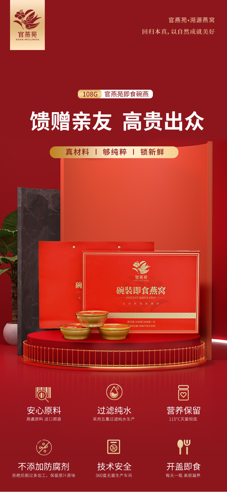 商品名称:官燕苑碗装即食燕窝108gX5碗/盒孕妇食品营养品正规溯源燕窝礼盒送礼佳品营养