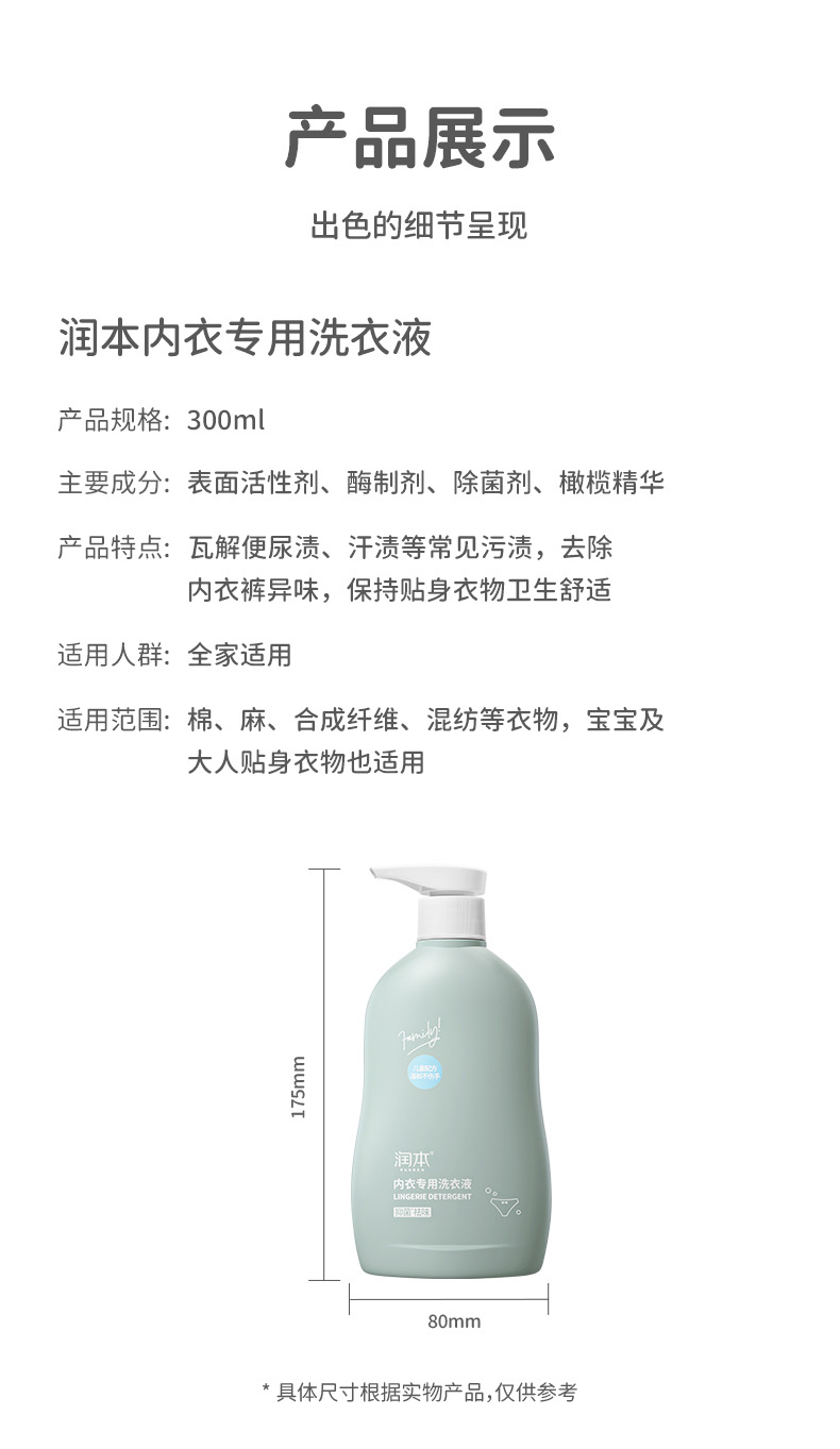 商品名称:润本儿童内裤洗衣液洗内衣内裤专用液300ml婴儿宝宝小孩家用洗衣液