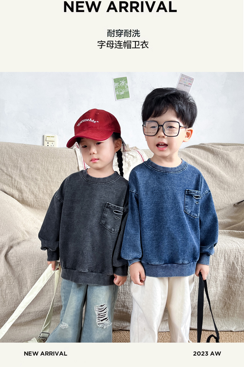 泰迪伙伴儿童秋季新款牛仔圆领卫衣男童秋装长袖t恤女童外穿上衣中大童秋款童装