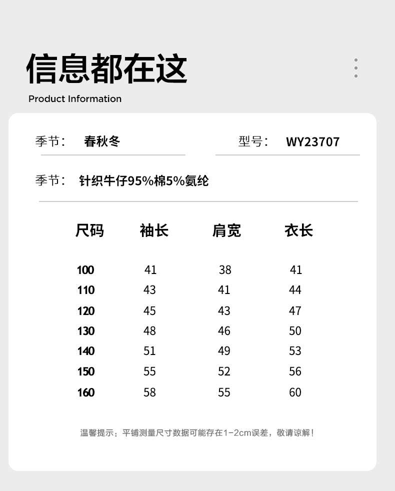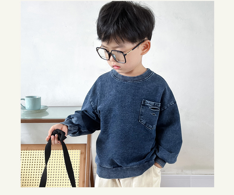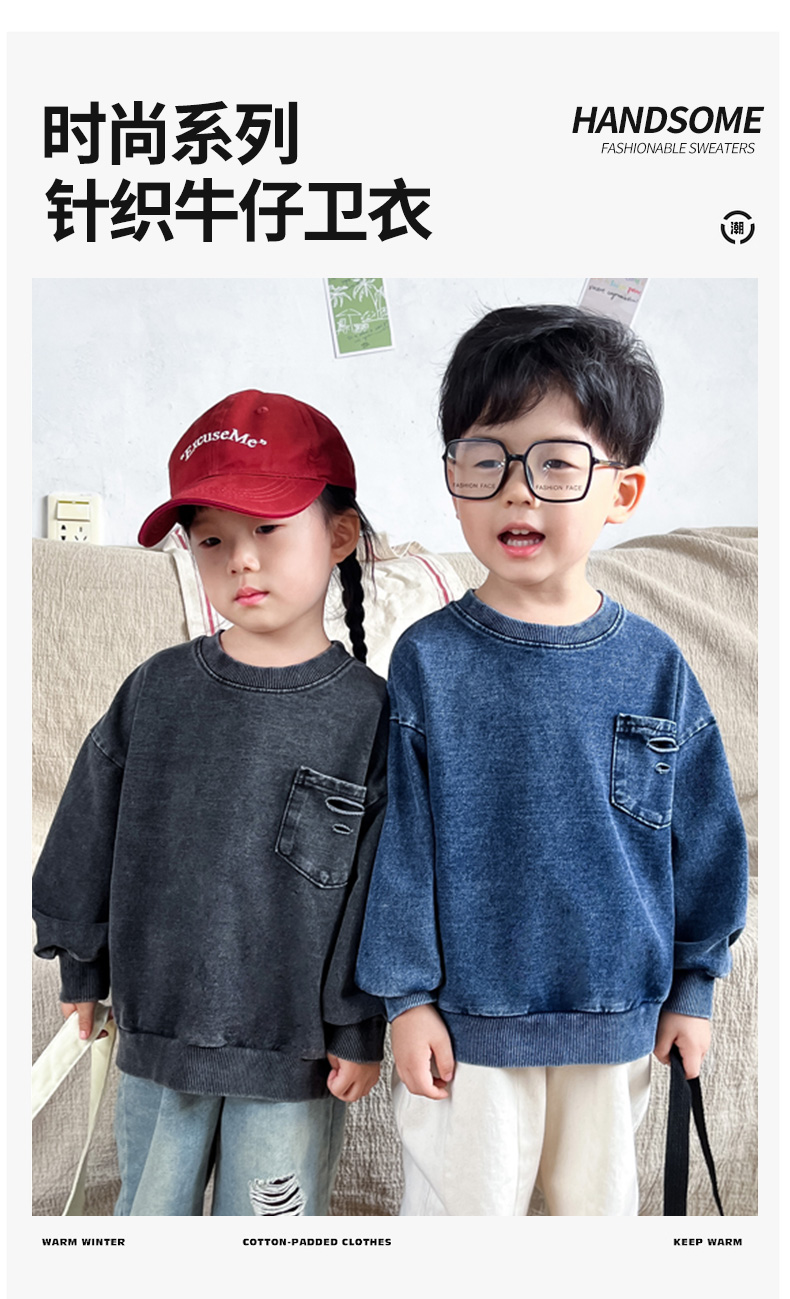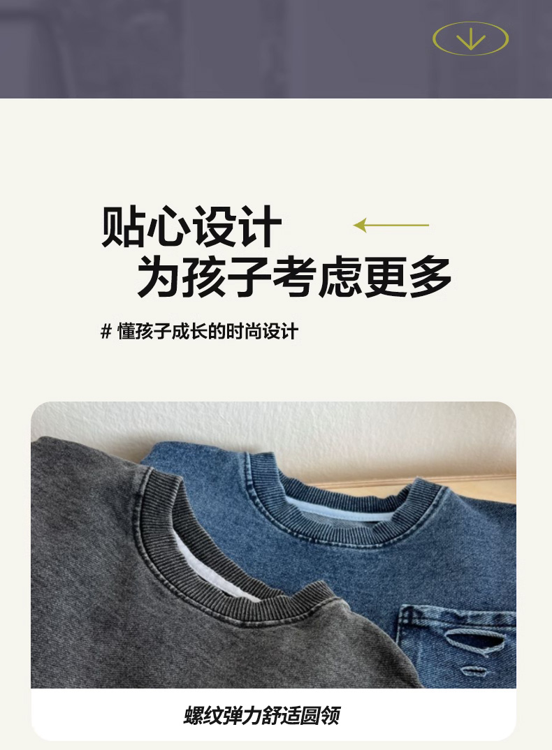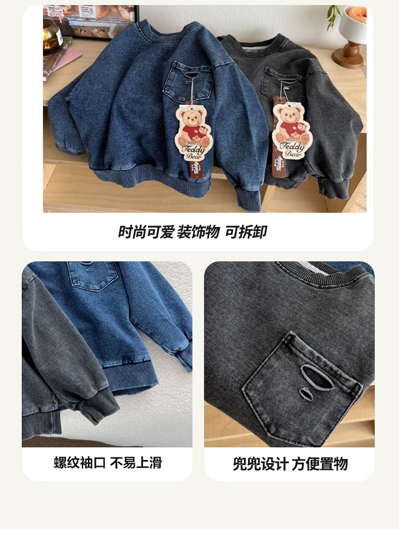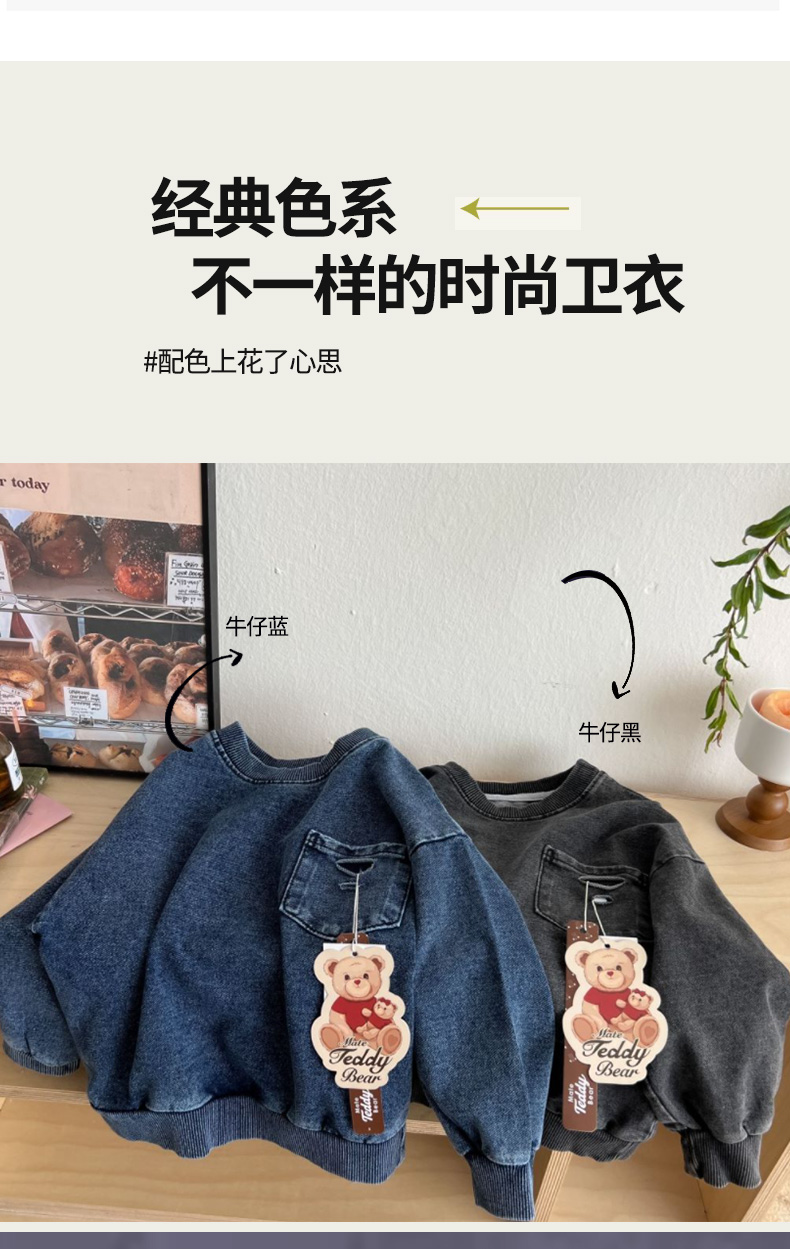 商品名称:泰迪伙伴儿童秋季新款牛仔圆领卫衣男童秋装长袖t恤女童外穿上衣中大童秋款童装