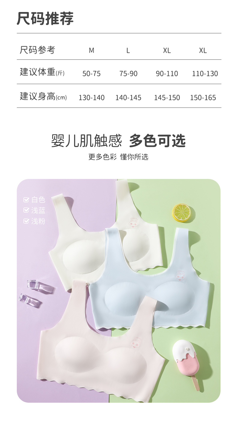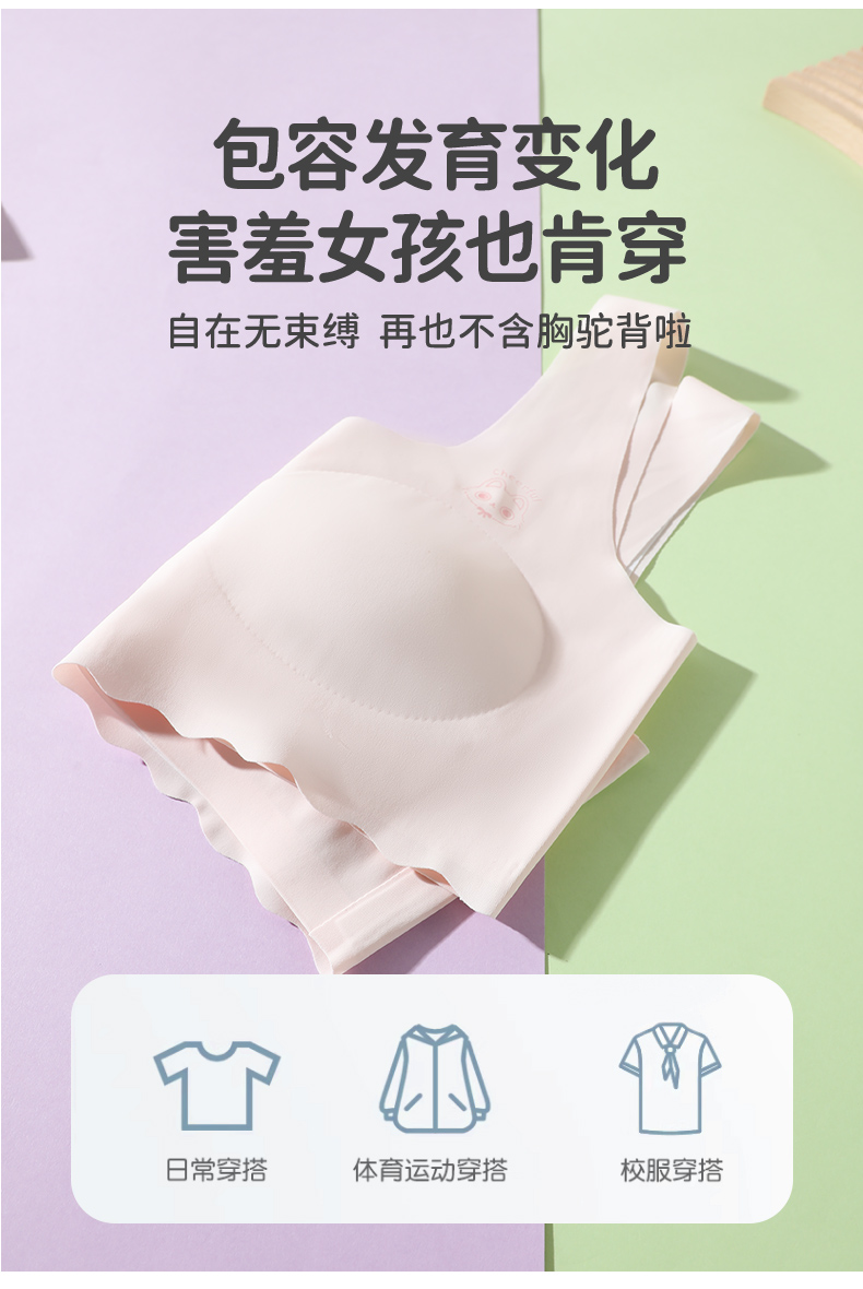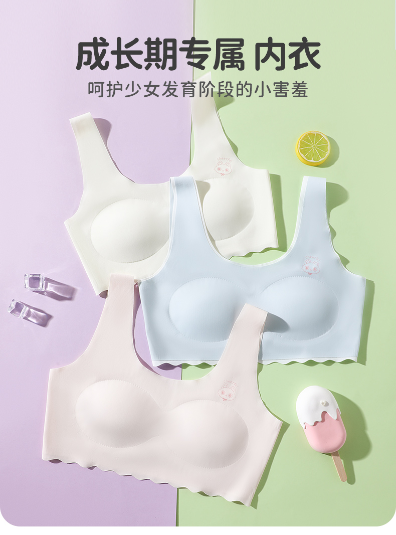 商品名称:彩桥中学生少女文胸运动无痕初中生发育期内衣二三阶段高中生背心内衣