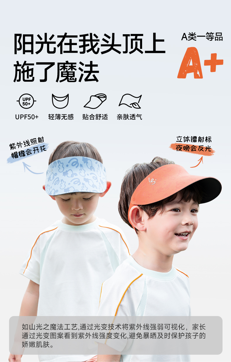如山儿童防晒帽夏季防紫外线宝宝遮阳帽男孩女童空顶太阳帽大帽檐
