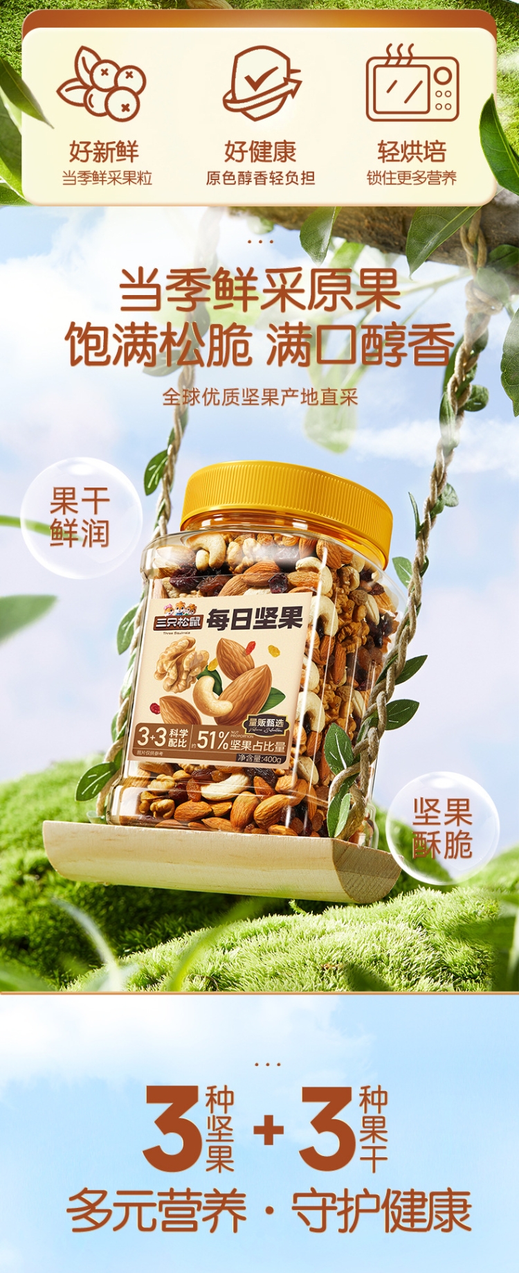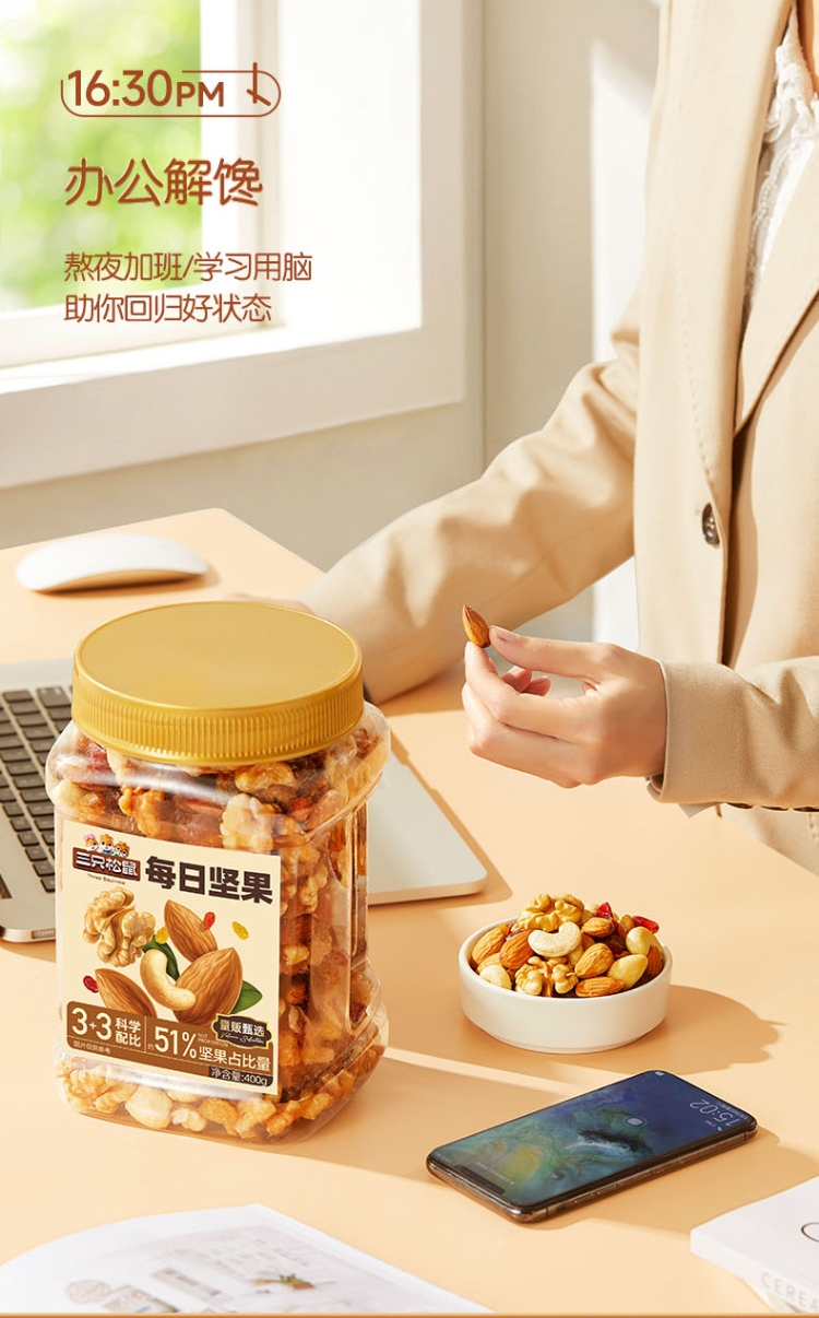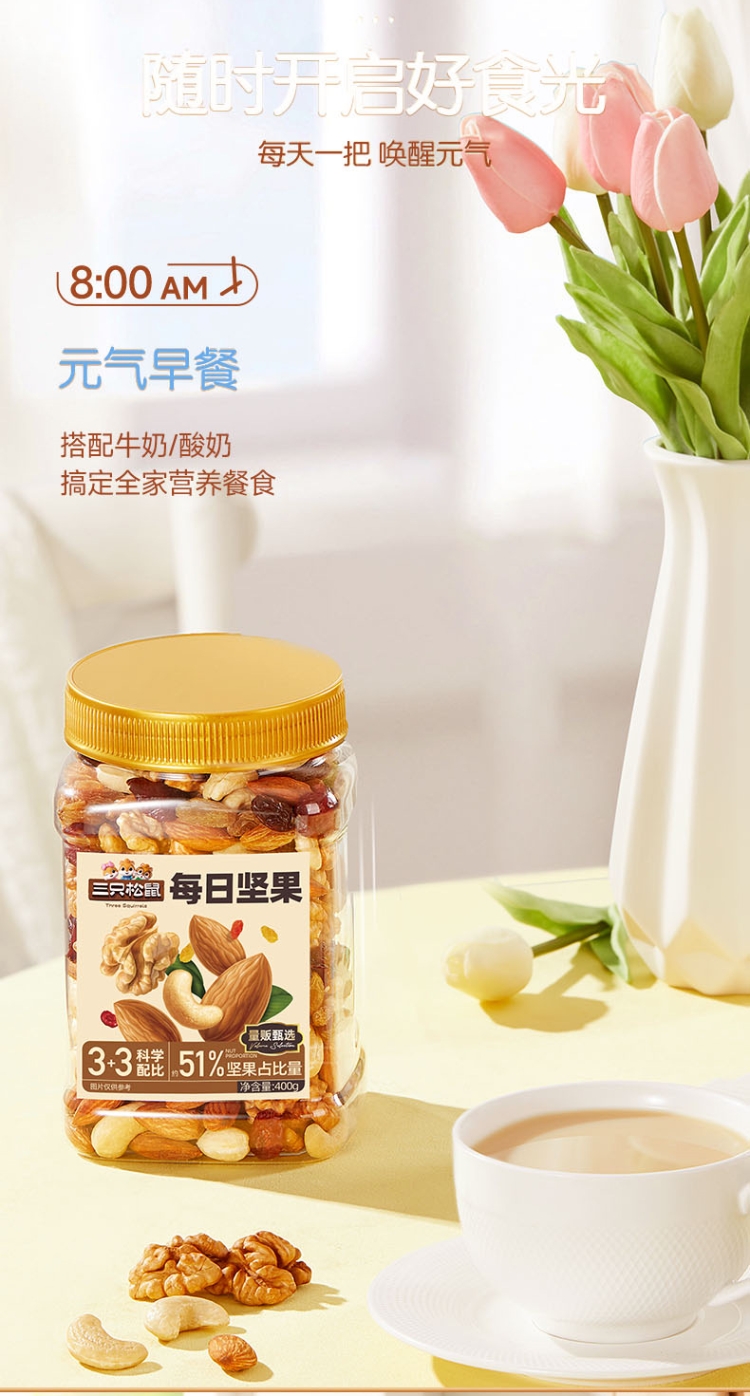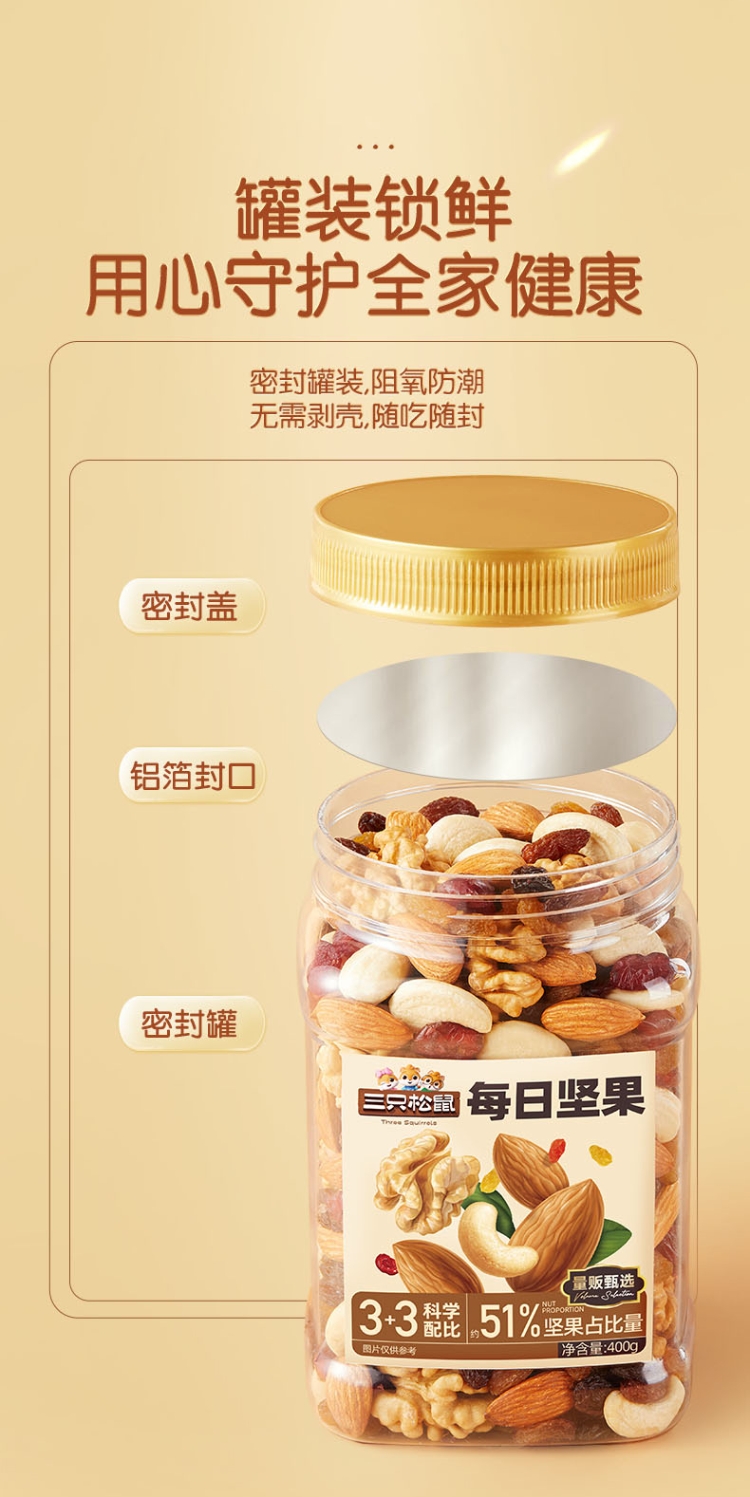商品名称:三只松鼠罐装每日坚果元气款400g/罐孕妇健康休闲零食混合坚果干小零食干果大礼包