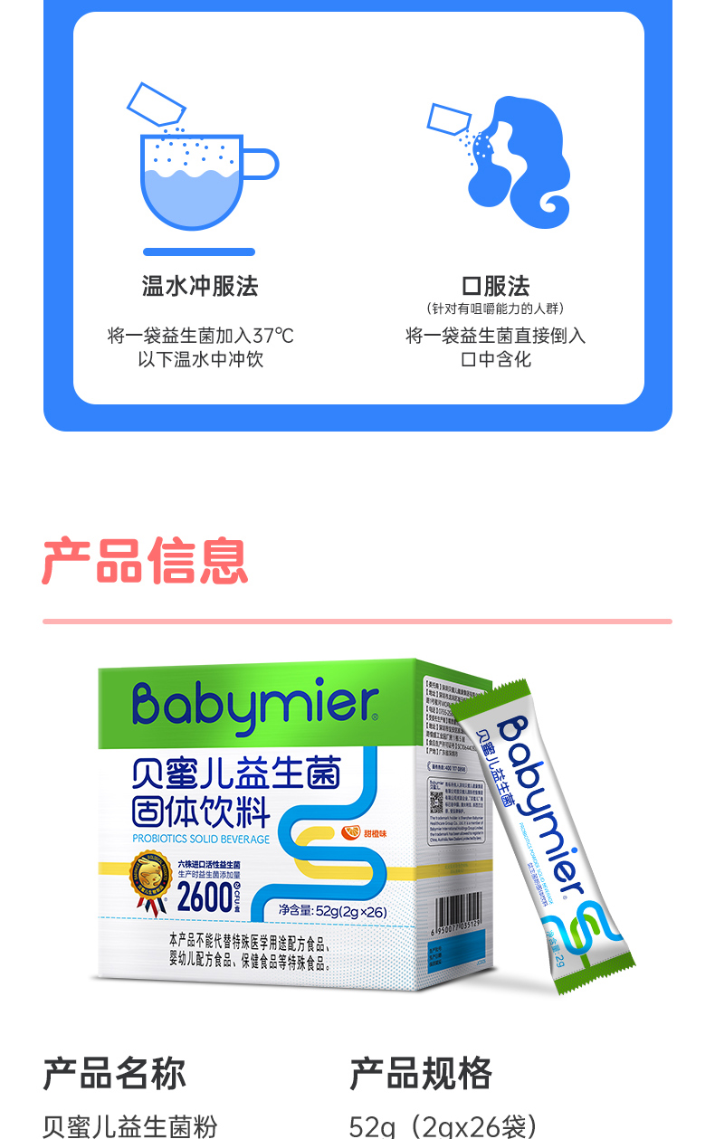 商品名称:【25年新货】贝蜜儿六联益生菌粉少年儿童肠道肠胃冲剂成人益生元膳食纤维冻干粉26袋