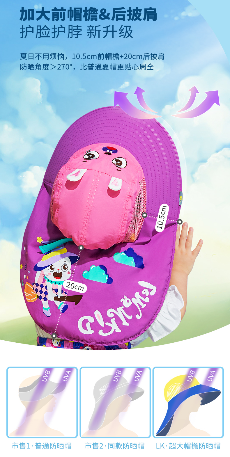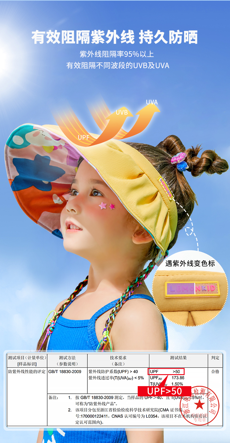 商品名称:LK2220038-2柠檬宝宝 Lemonkid儿童夏季防晒遮阳帽防紫外线夏款透气遮阳帽