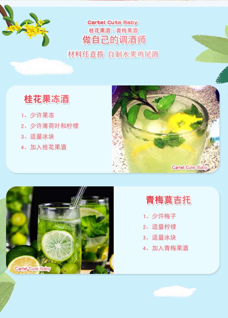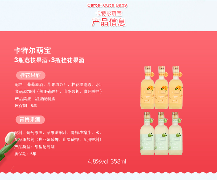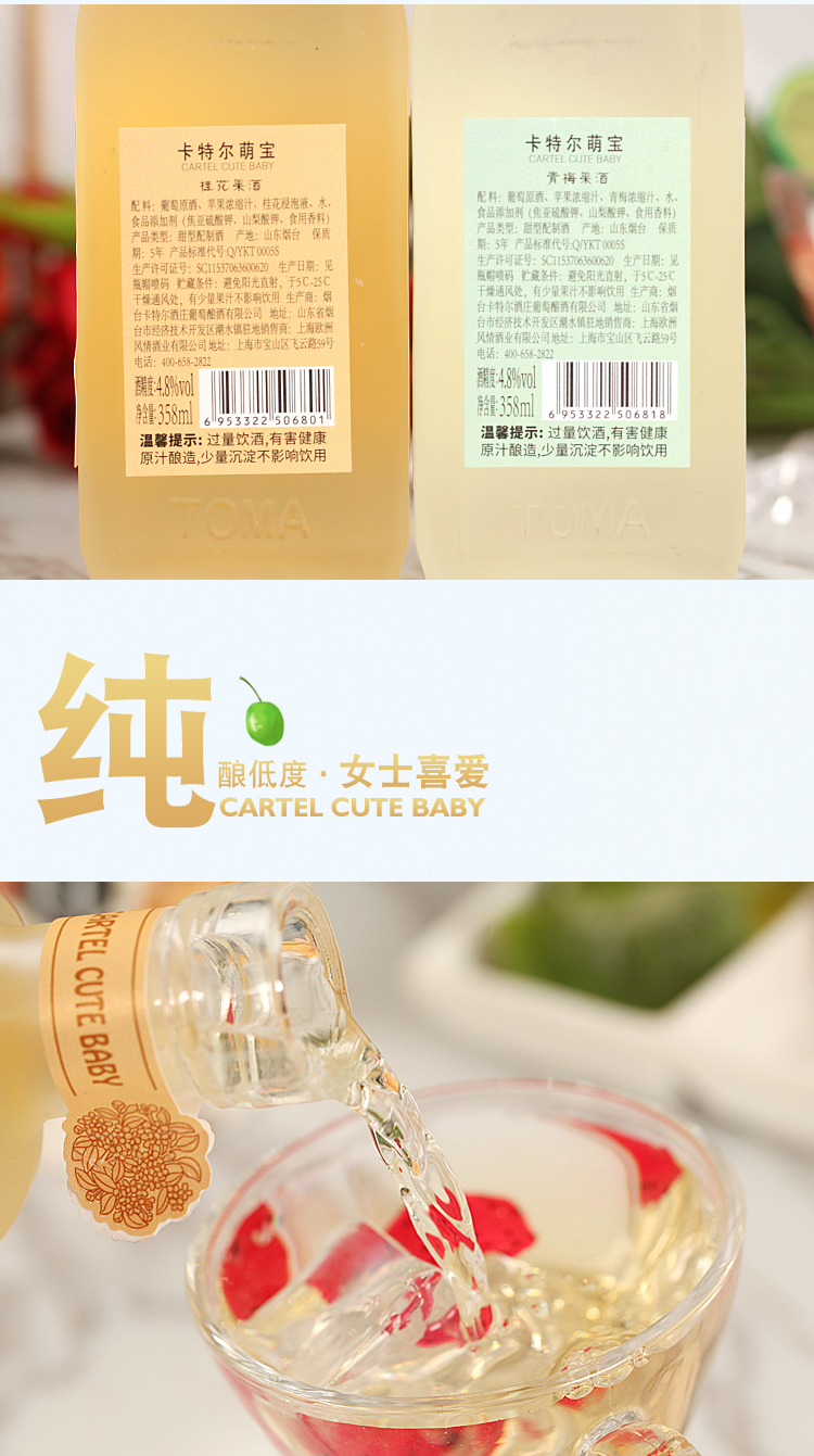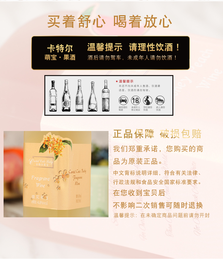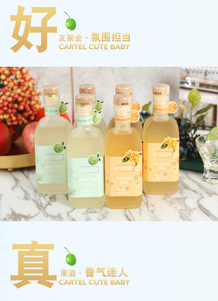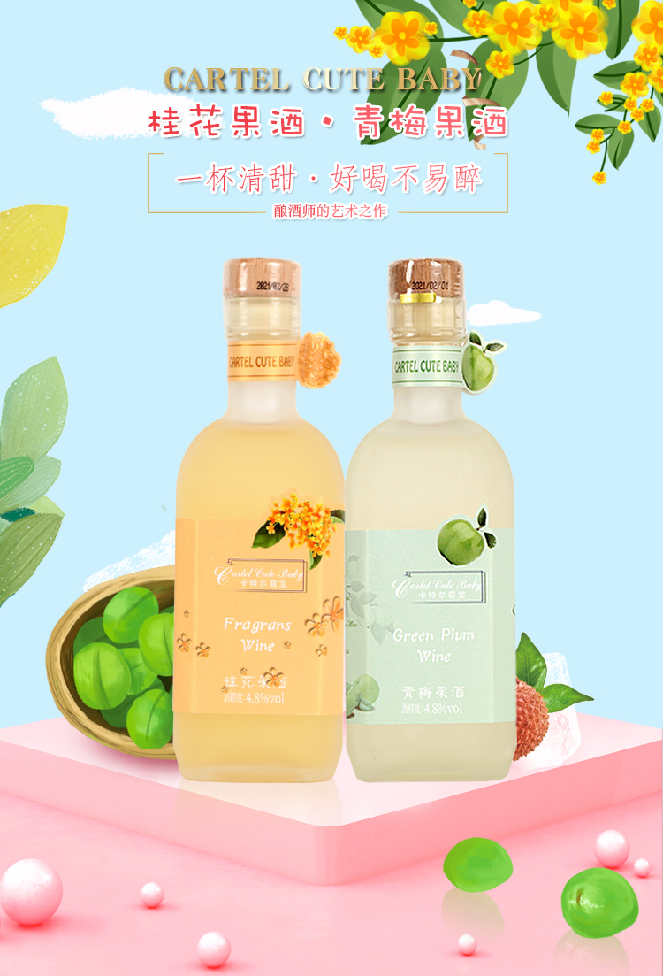 商品名称:卡特尔高颜值甜酒女士果酒微醺少女起泡酒桂花口味和青梅口味组合358ml*2支