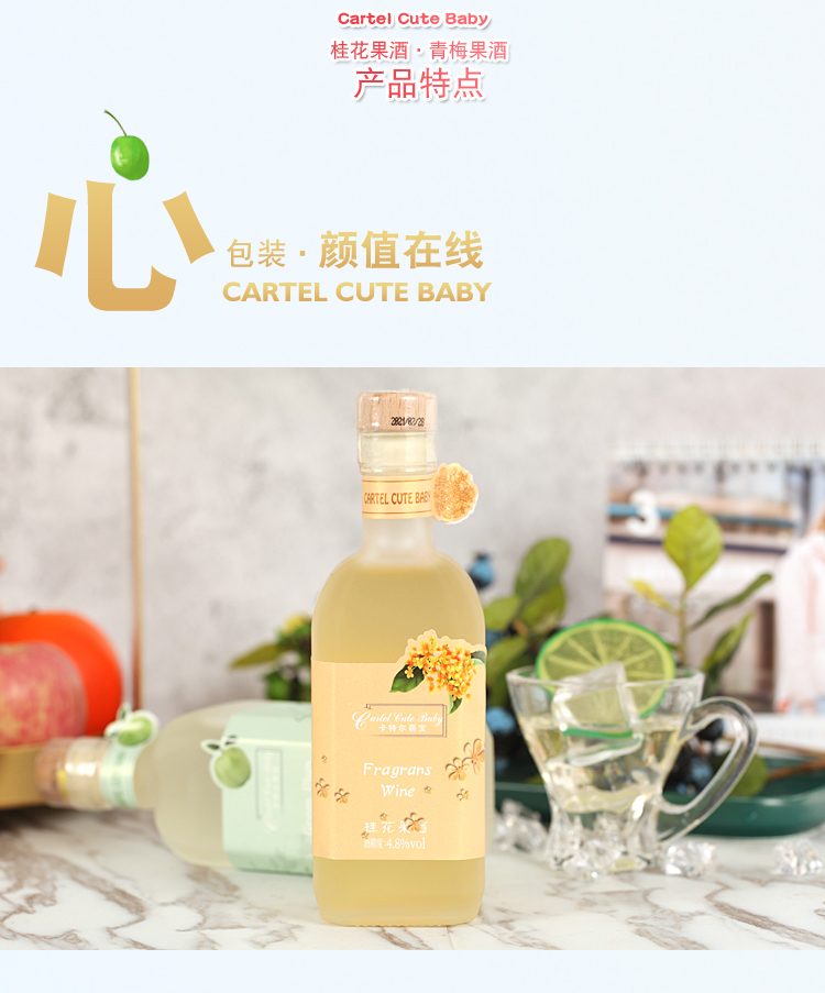 卡特尔高颜值甜酒女士果酒微醺少女起泡酒桂花口味和青梅口味组合358ml*2支