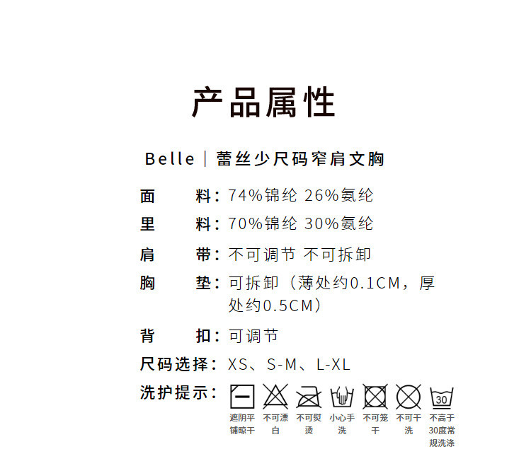 商品名称:内外蕾丝少尺码背心文胸带背扣精致羽纹内衣 006090