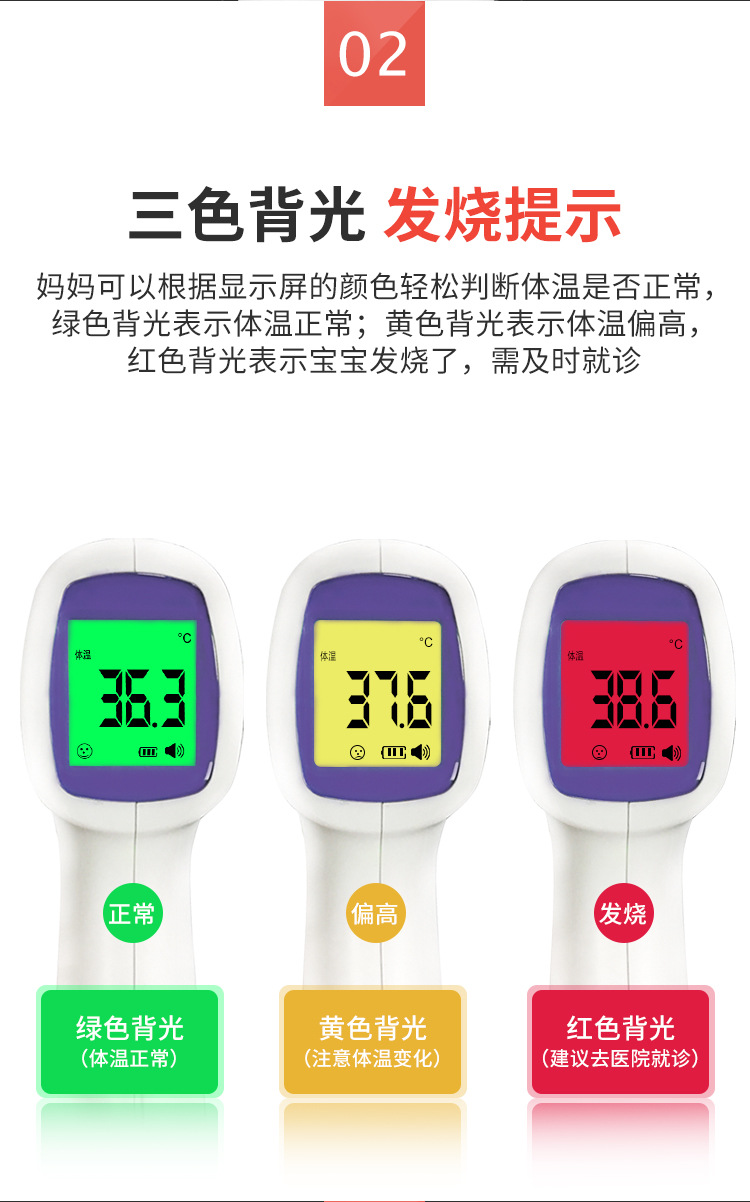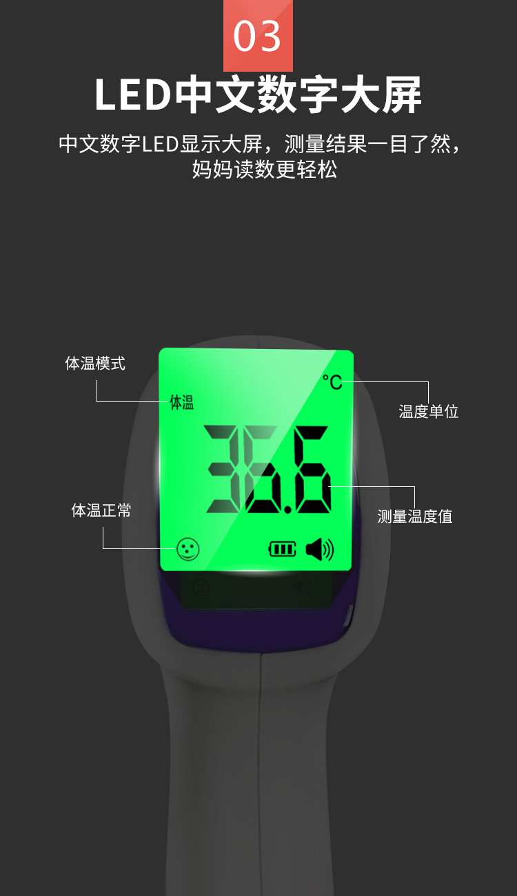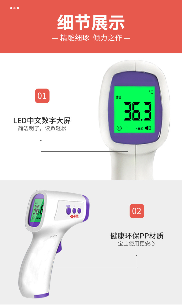 商品名称:中文医用级额温枪红外额头体温计耳温枪测温仪电子计体温枪儿童体温计腋下温度计