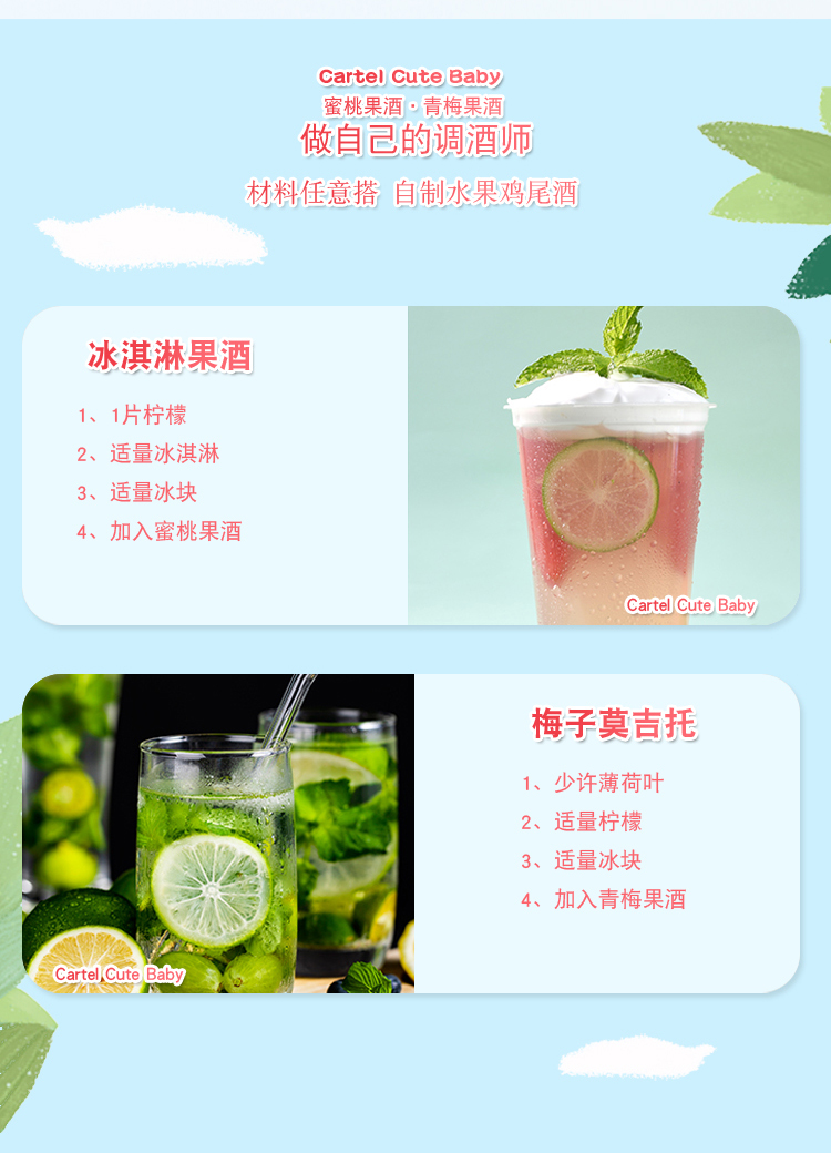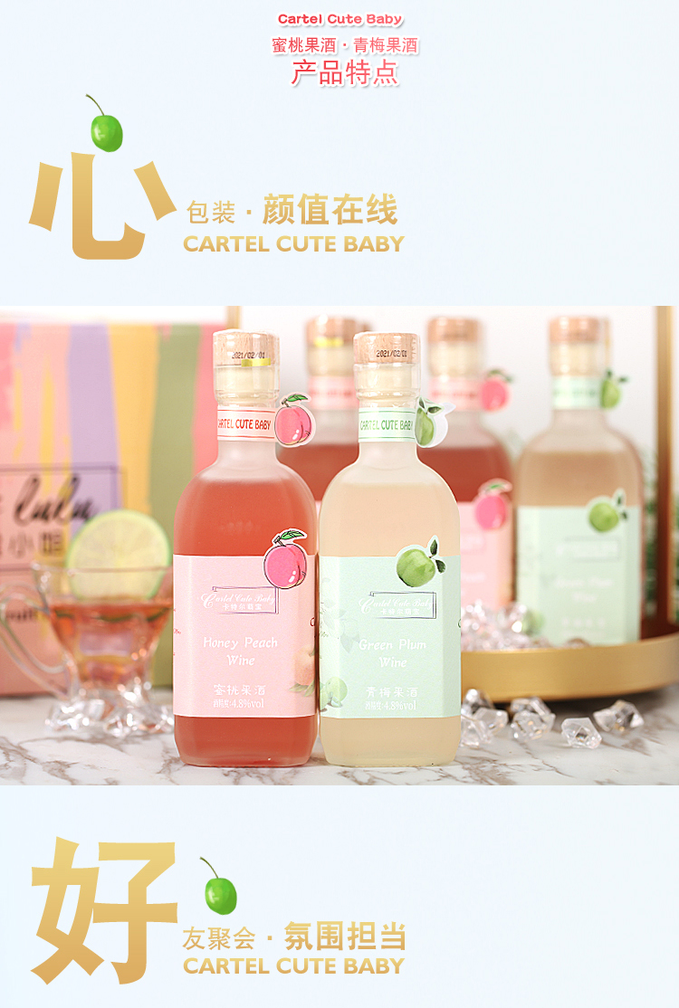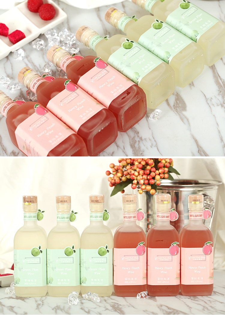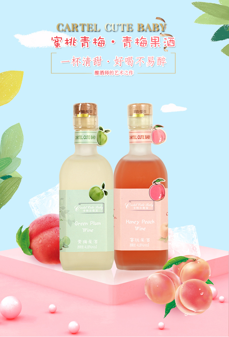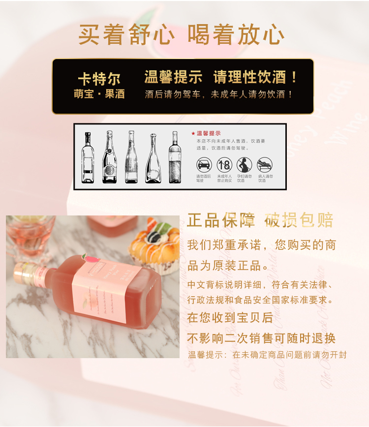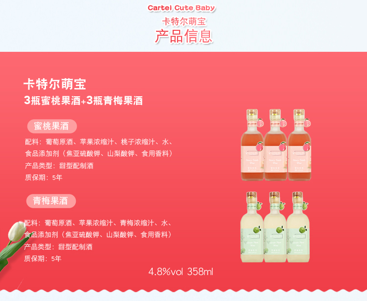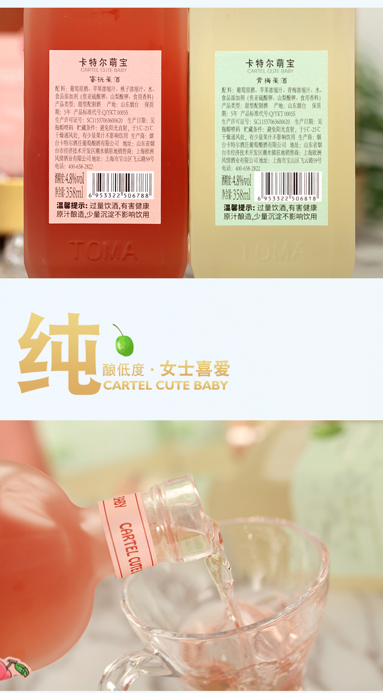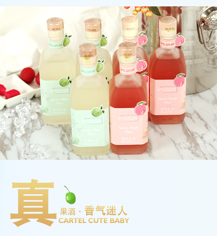 商品名称:卡特尔高颜值甜酒女士果酒微醺少女气泡酒青梅口味和蜜桃口味组合358ml*2支